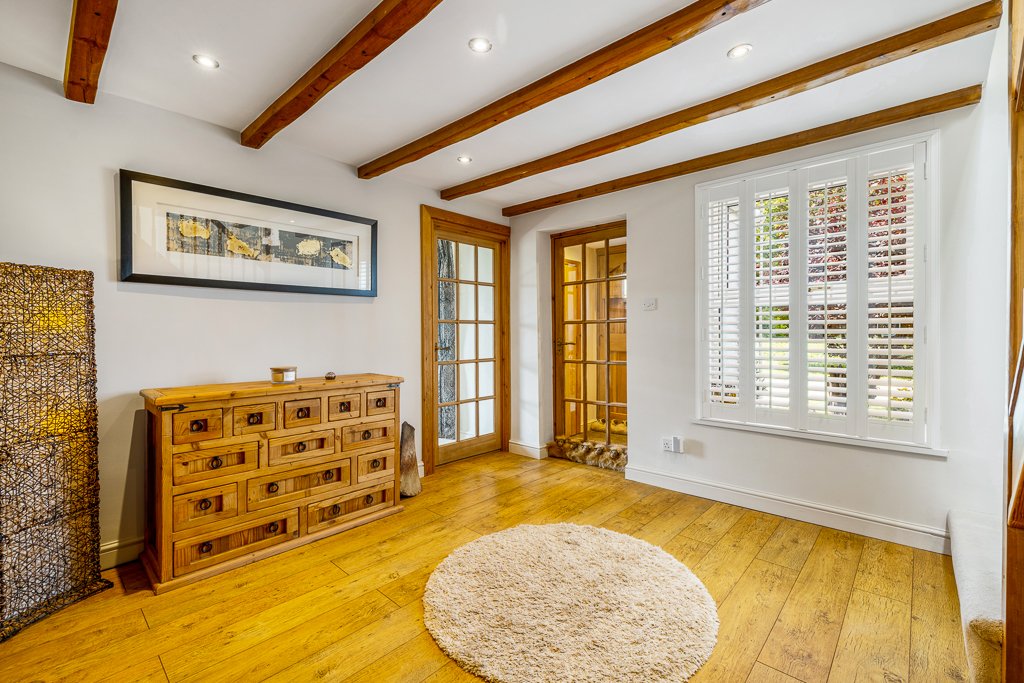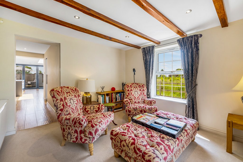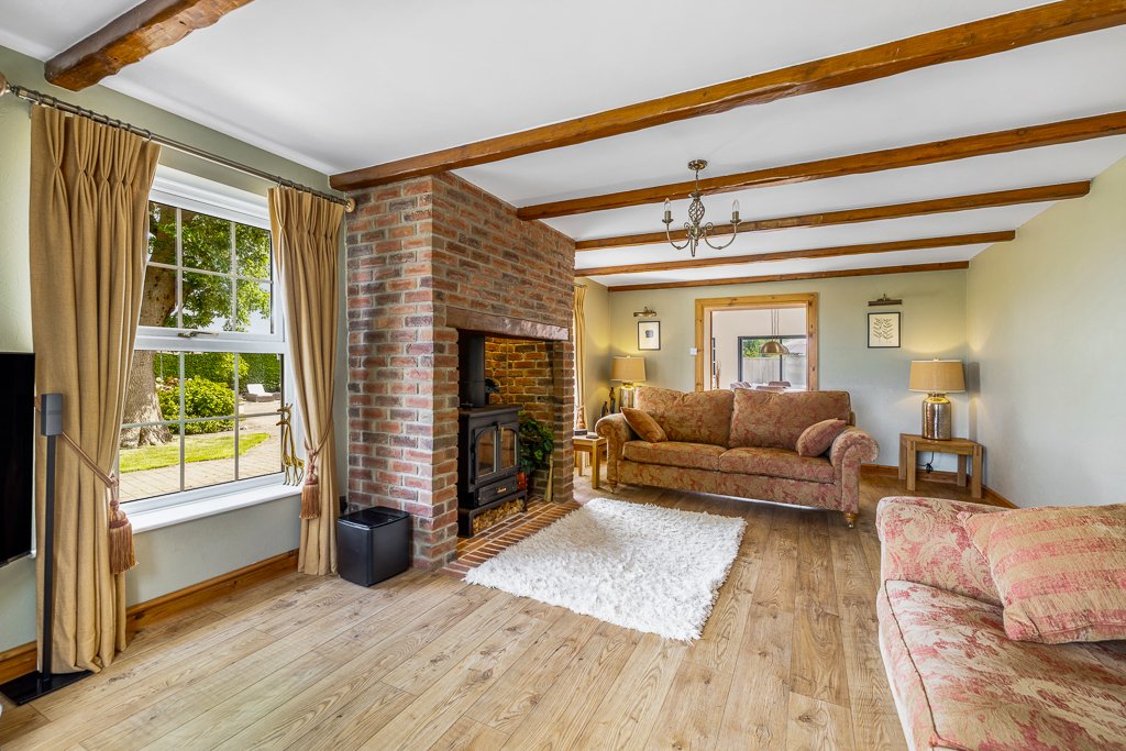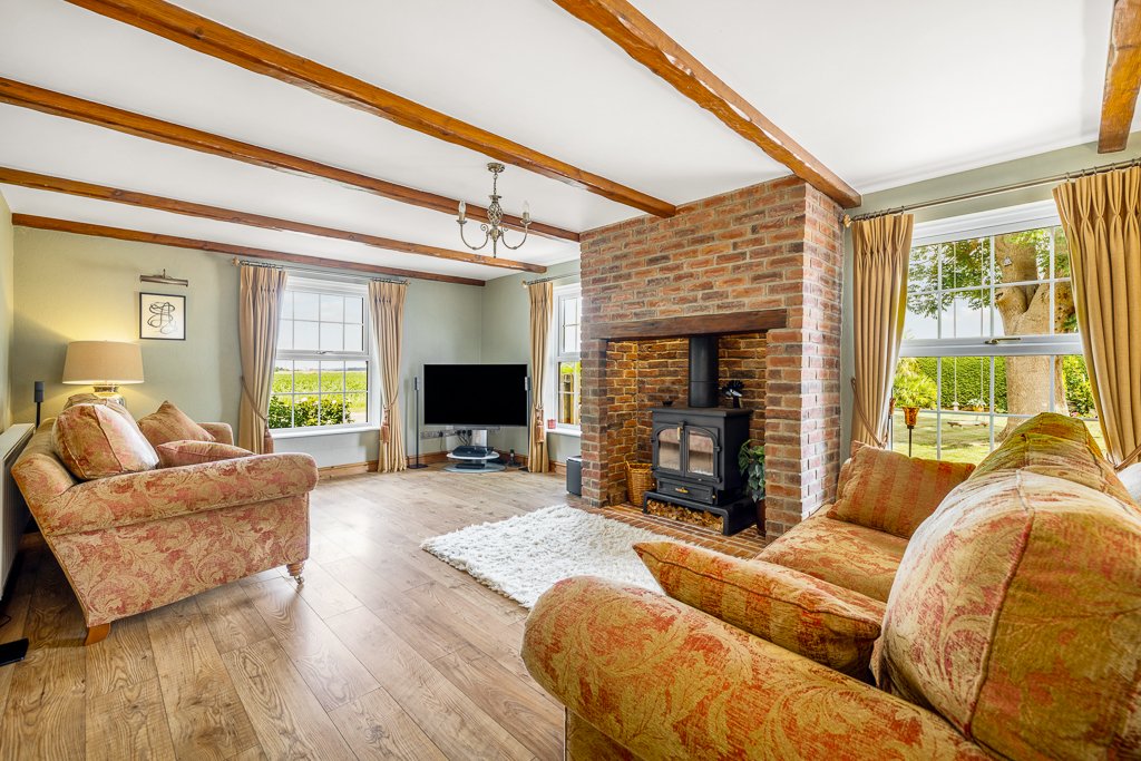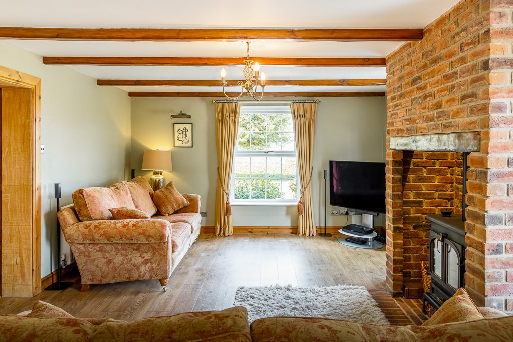 - 22 ft light-filled lounge, with exposed beams and aspects to open countryside and the garden