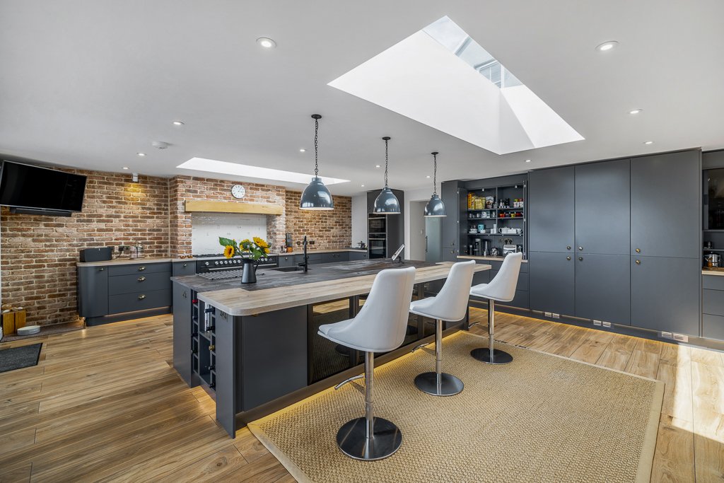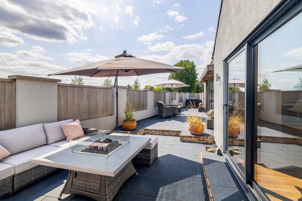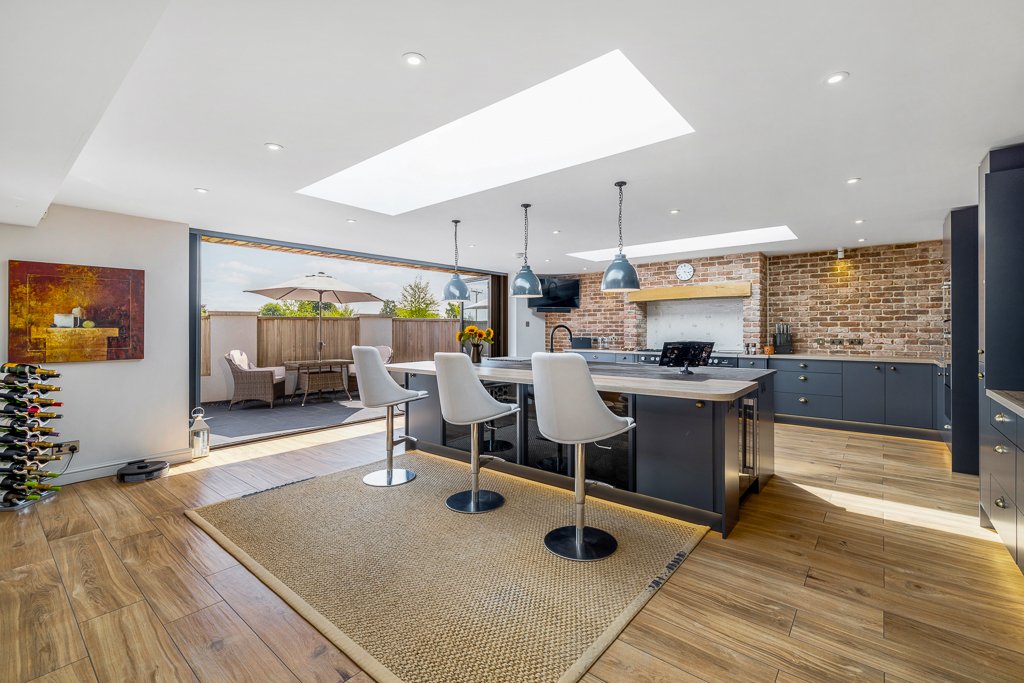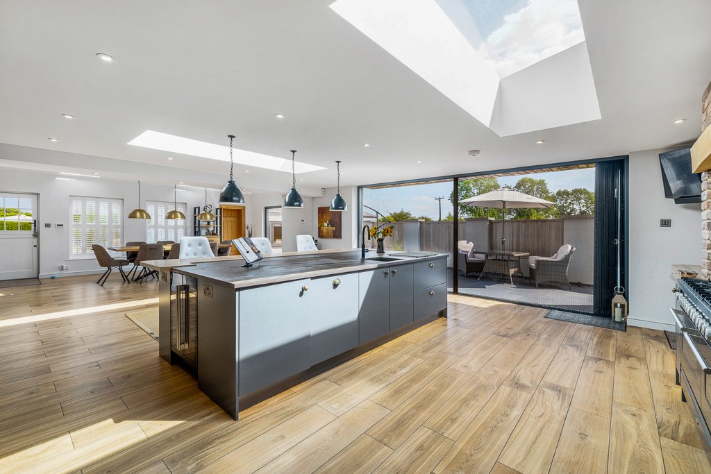 - High specification kitchen with large island & bi-folding doors to secluded sun-terrace