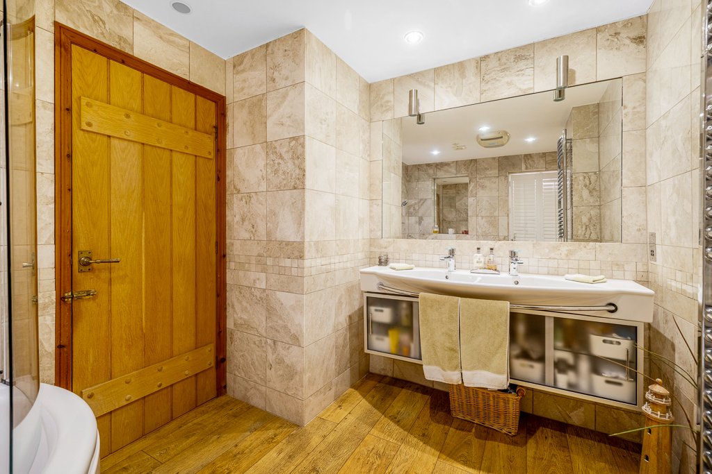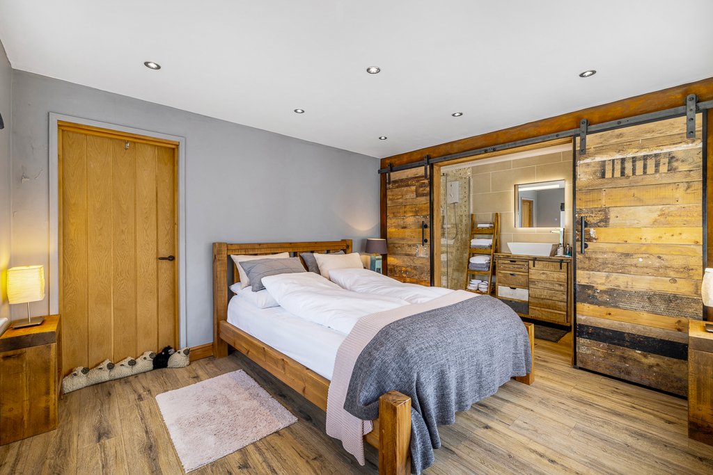 - Ground floor bedroom with stylish sliding door into fully tiled ensuite shower room