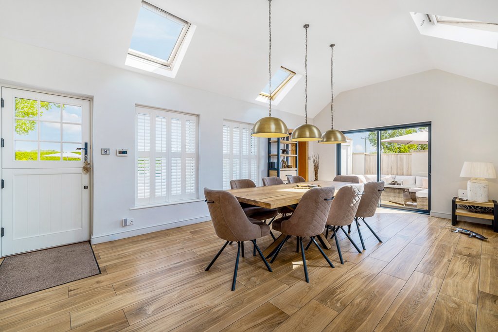 - Dining area with French doors to the terrace, internal door to ground floor bedroom & external door