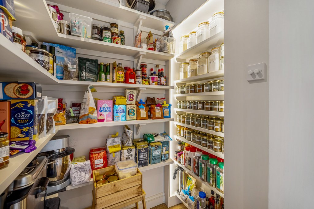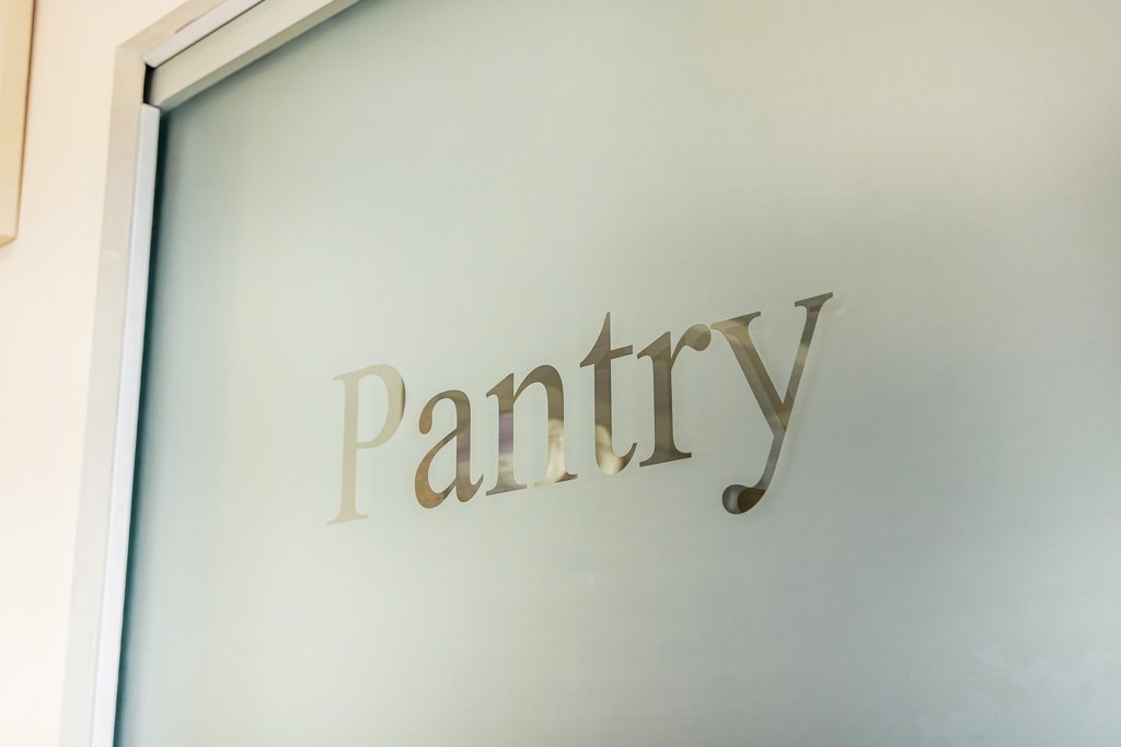 • Separate Pantry with glass pocket-door access and extensive shelving