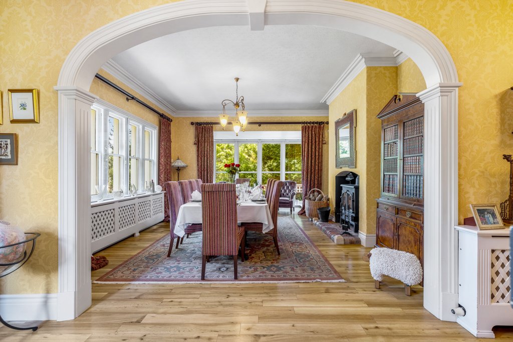 • Light filled entrance hall with elliptical arch into the dual aspect dining room
