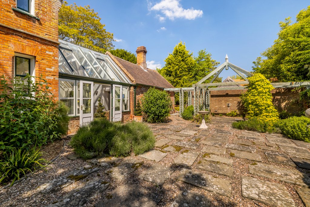 • Generous flagstone terrace with an arbour adorned with scented climbers