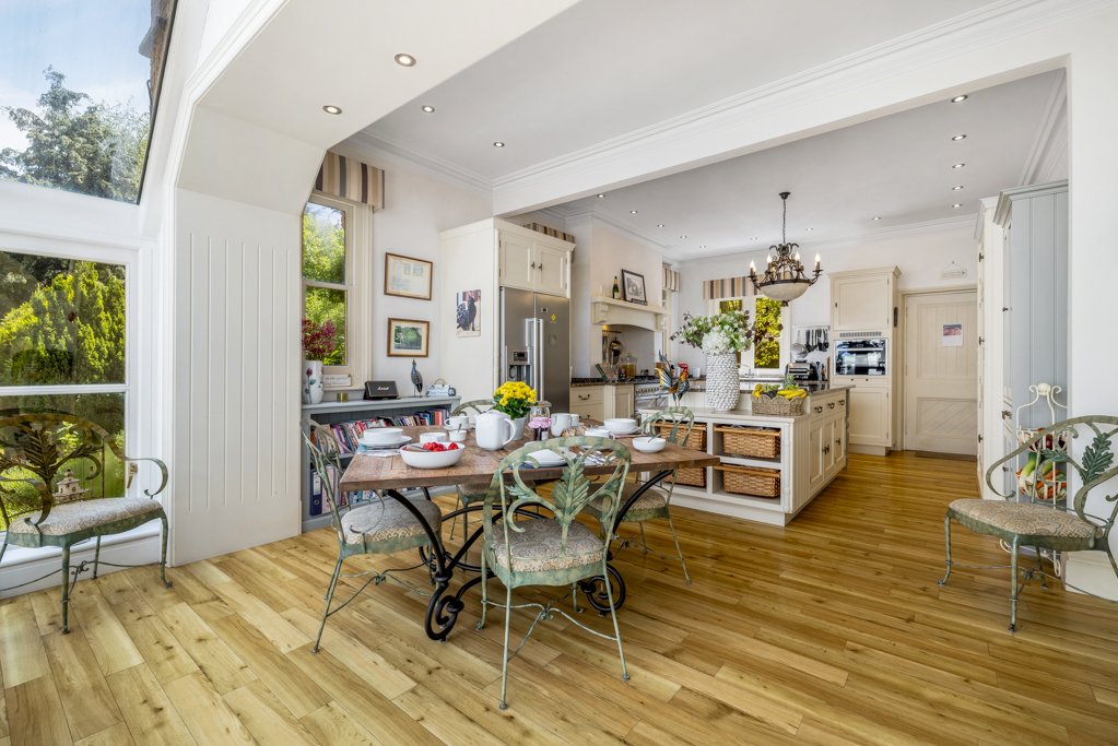 “The house is very special at Christmas, visitors are welcomed through the entrance hall into the formal dining room with the log burning roaring and thanks to the huge bay window can enjoy the beautiful garden view. The kitchen with the spectacular glass atrium connected to it is very much the heart of our home and is a really versatile space, equally suited to relaxed family living and elegant entertaining.”