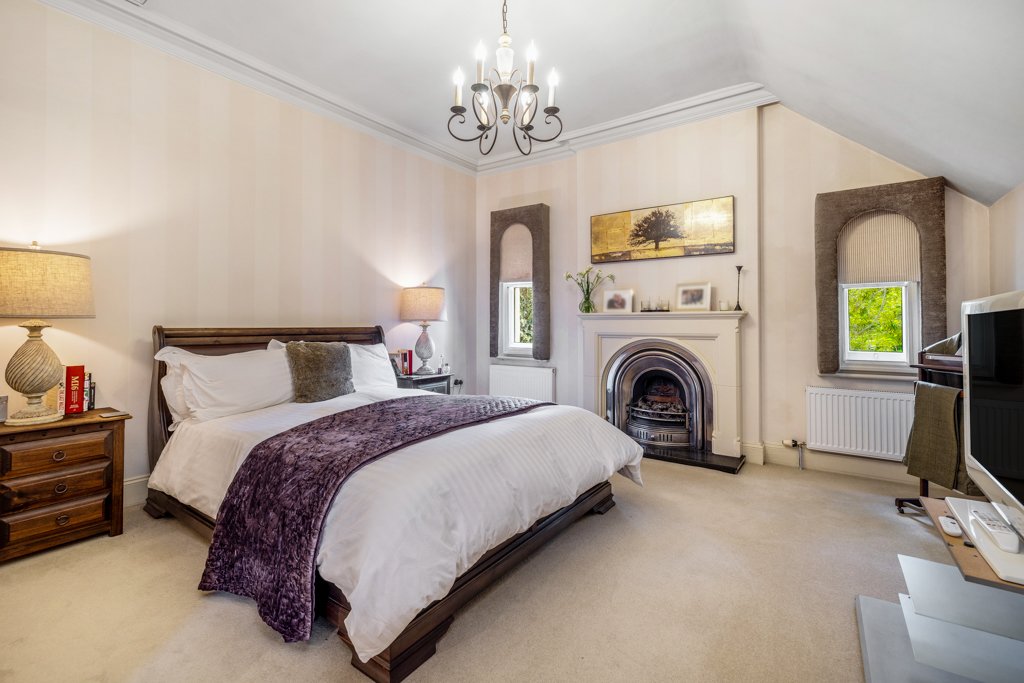 • Principal bedroom with attractive polished cast iron gas fire in stone & marble fire surround