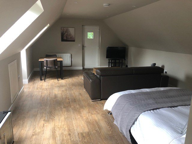 • Treetops boasts a 22 ft. open-plan living area with kitchenette, bedroom & en-suite shower