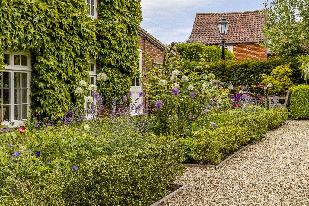 - Quintessential English country garden of around 3/4 acre (sts) with a large expansive lawn and well-tended and established hedges, trees, shrubs and flowering plants