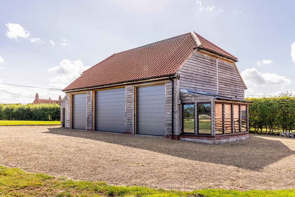 - Expansive oak barn/workshop – with triple electric doors and a four-post car lift