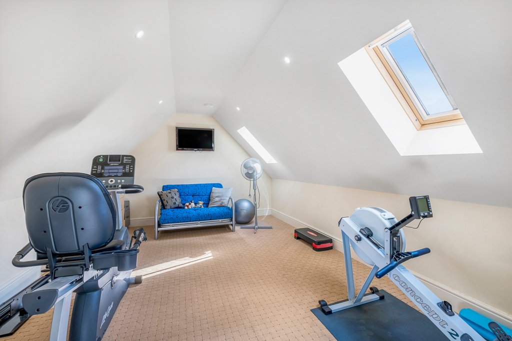 The grounds are every bit as captivating as the house itself – offering fantastic outdoor entertaining spaces with a large sun terrace and a fully equipped, covered outdoor kitchen. Beyond the gardens, a large field extends to approximately 2.3 acres (STS), with further potential for recreational use.