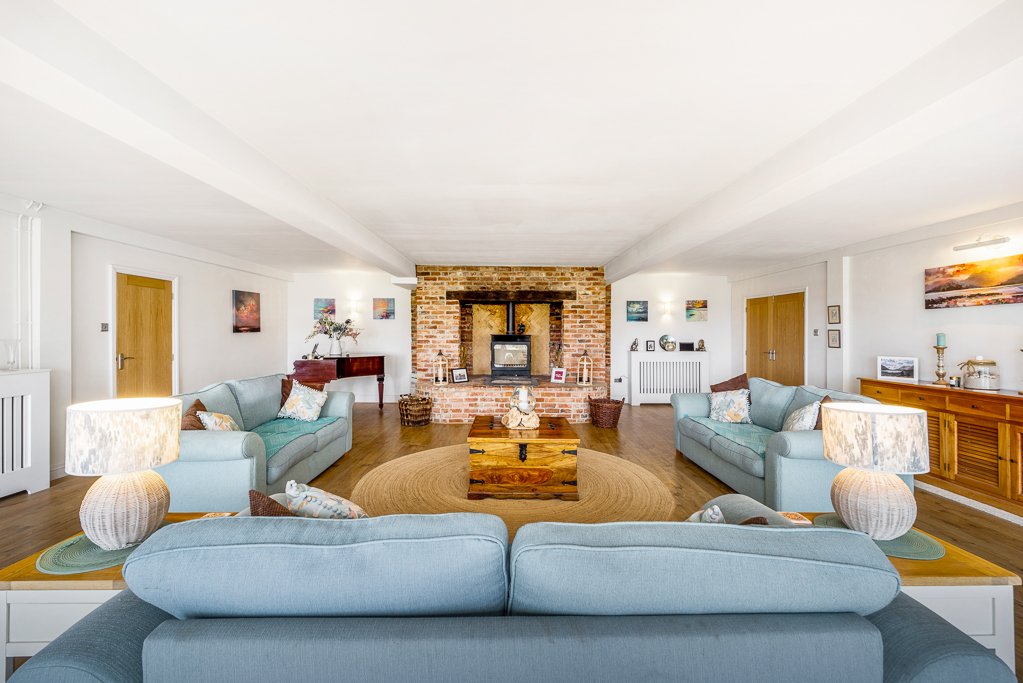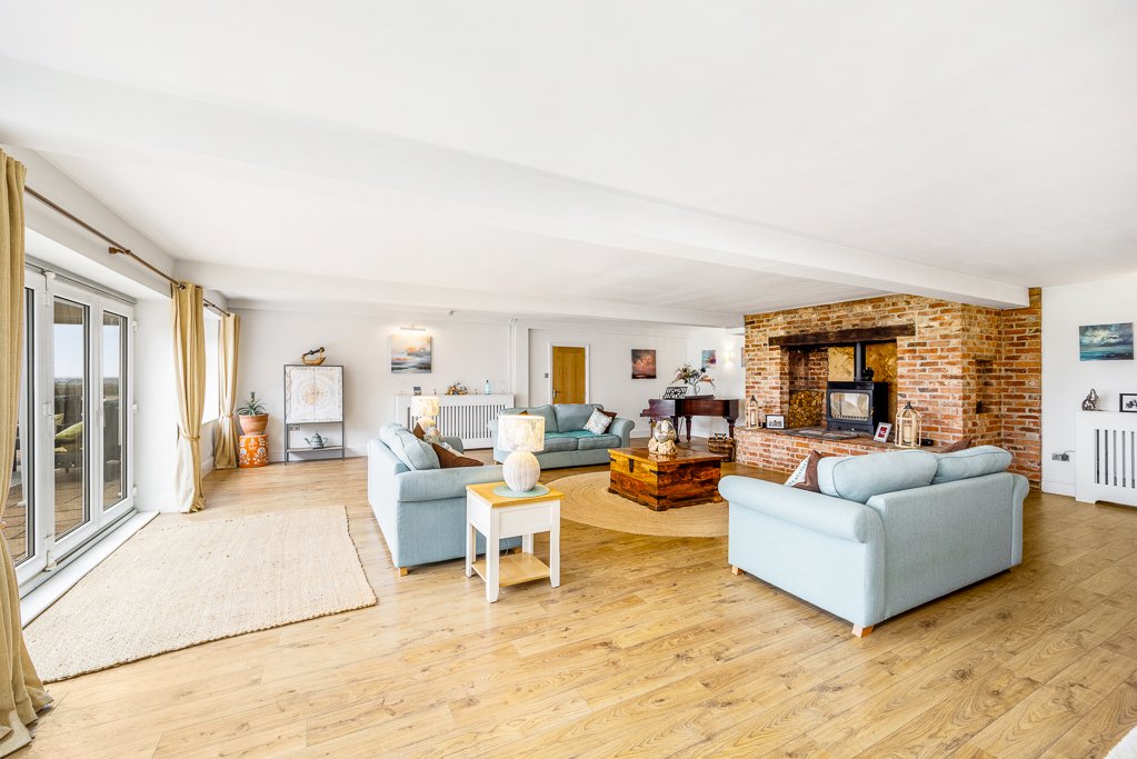 “The central living area with huge bi-folding doors to the terrace is the heart of the home and is lovely place to relax or entertain with family and friends, especially when the log burning stove is roaring away.”