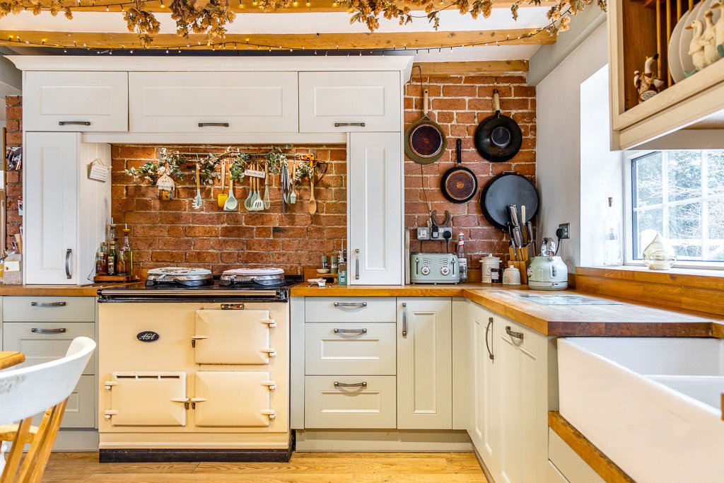 • Wren fitted cabinets, solid wood worktops and double Belfast sink
