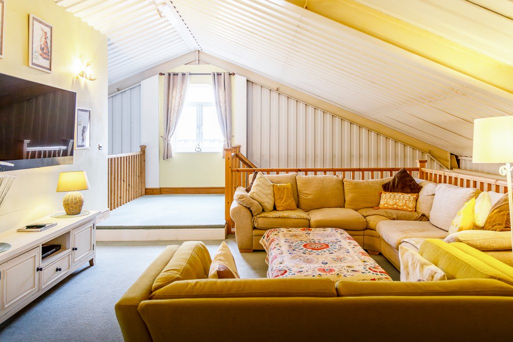 • First floor open gallery living room; with two further bedrooms and two stores