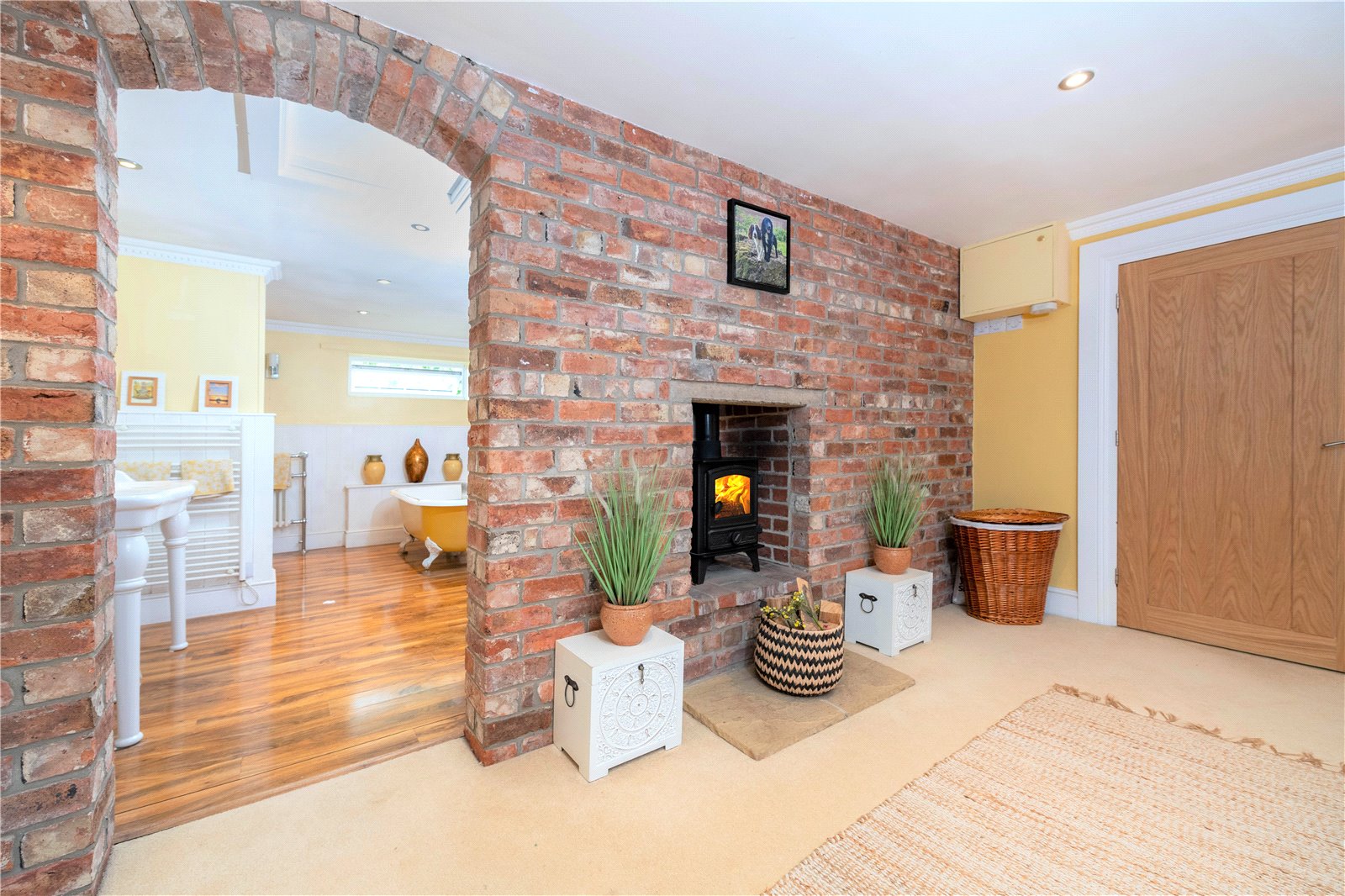 • Raised brick inglenook fireplace with Burley log burning stove