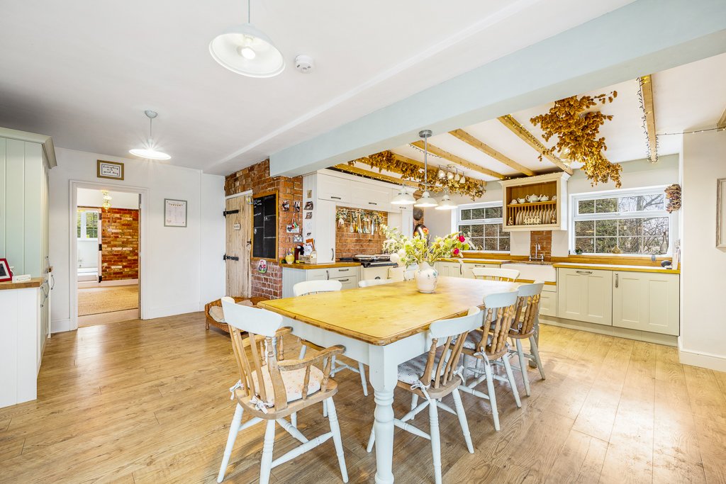 The Stables is an exceptional six-bedroom family home, beautifully presented and set within 1.83 acres (STS) of private, mature grounds. Idyllically positioned, it boasts breathtaking views of the rolling countryside, best enjoyed from the expansive south-facing rear terrace.