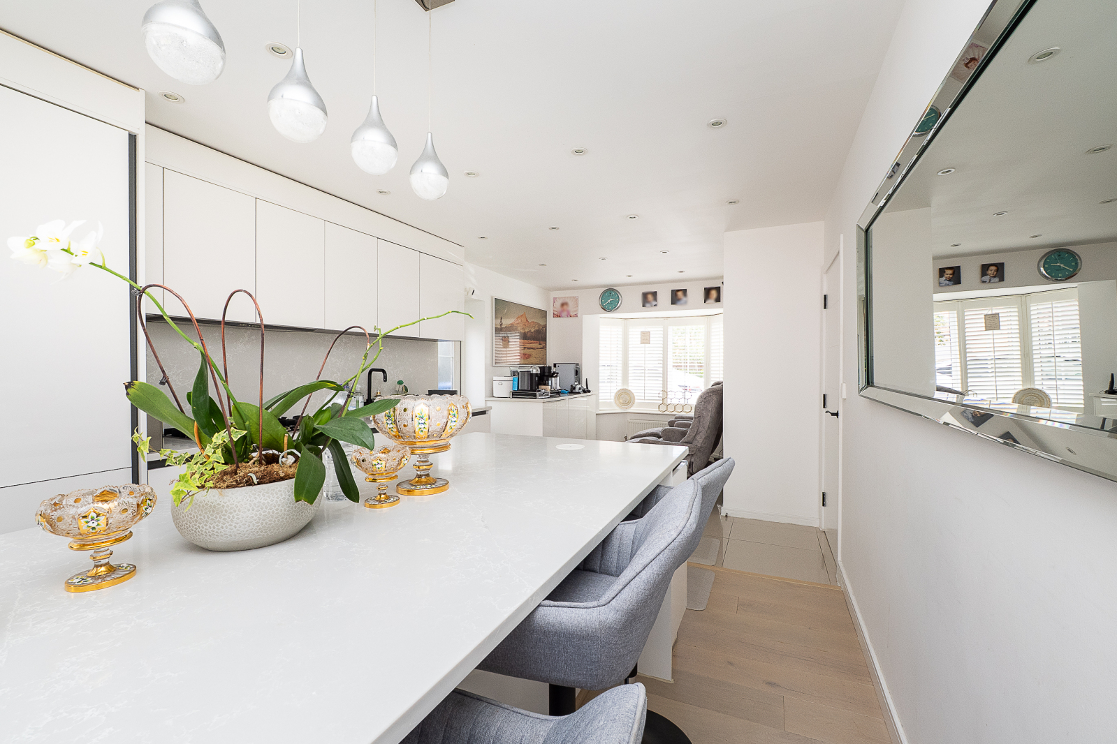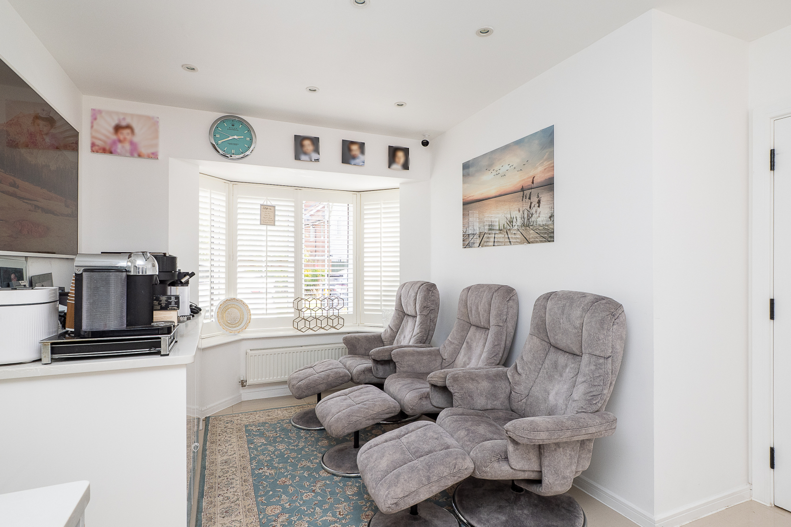Step inside to a bright and inviting entrance hall leading to a generous kitchen/family room, beautifully appointed with premium Miele appliances, a boiling hot water tap, insinkerator, and water softener. The open-plan layout is ideal for both entertaining and everyday living. A good-sized reception/dining room and a separate office offer versatile space, while a convenient downstairs WC completes the ground floor.