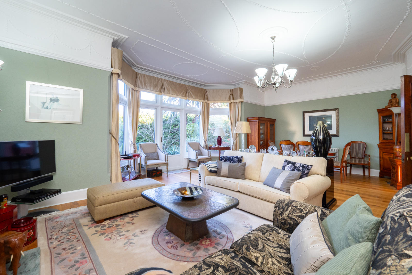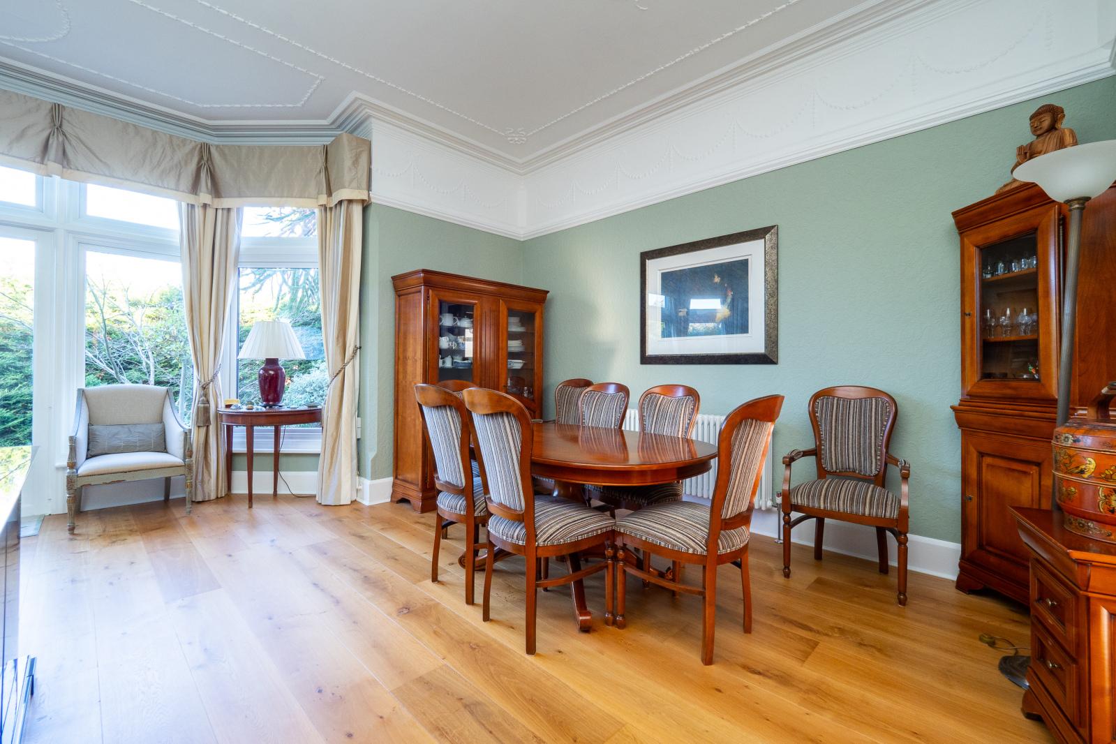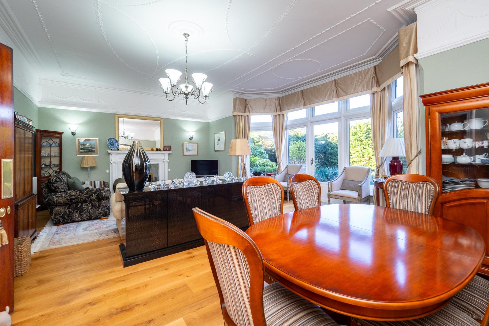 An extremely unique and exciting opportunity to purchase this stunning ground floor apartment showcasing living space just shy of 2000sqft. This spacious period property is complemented by its own private garden, a double garage and private off street parking for three/four cars.