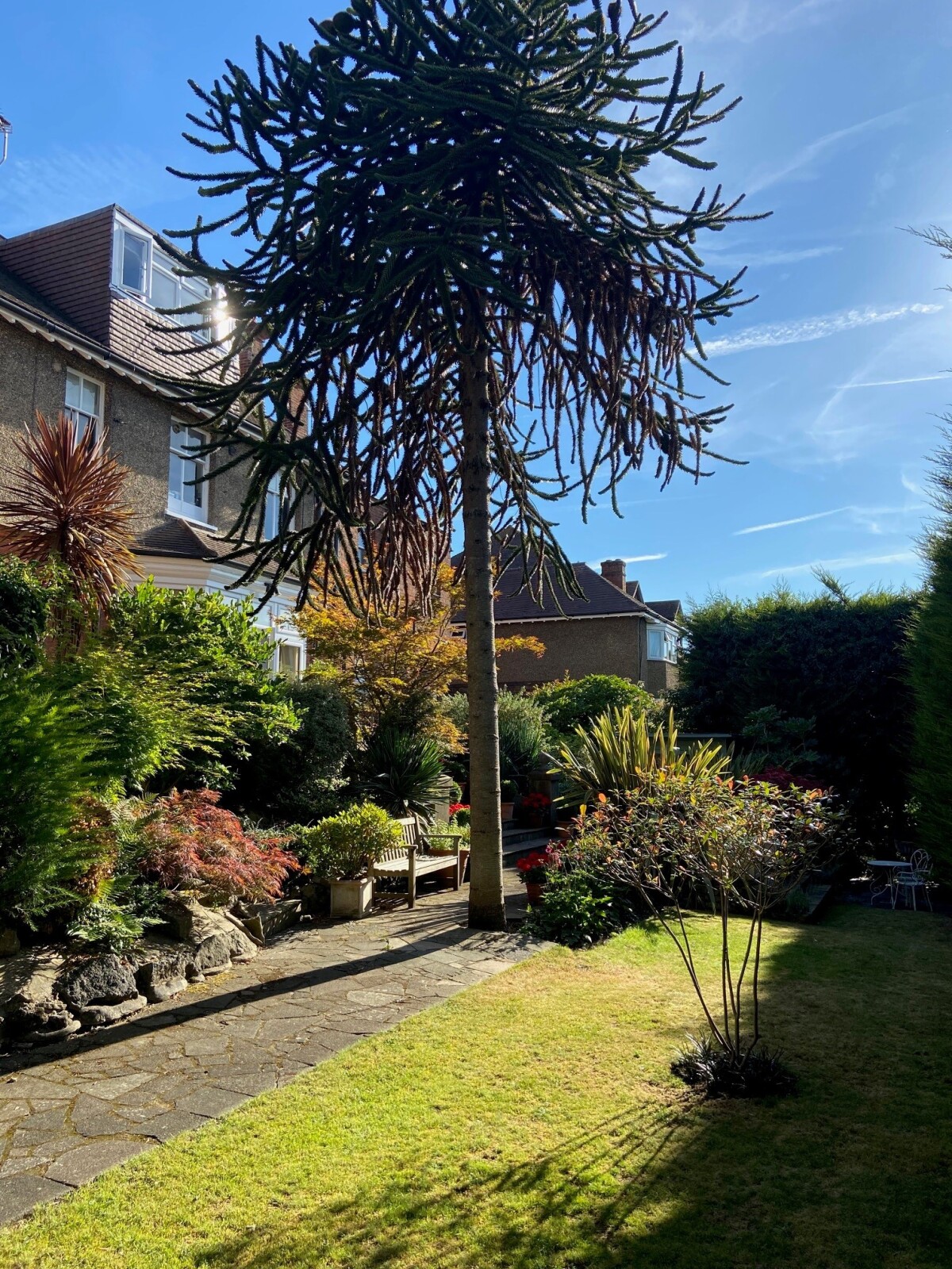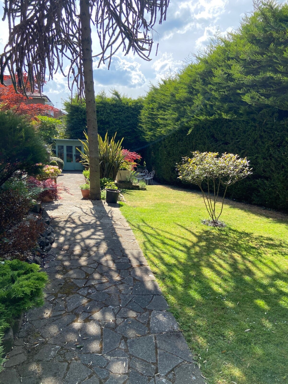 The secluded and extremely private low maintenance garden is around 85ft wide, complemented by a choice of patio areas, perfect for catching the sun as well as entertaining.