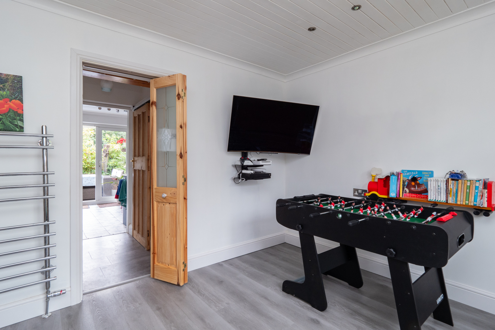 On entering the property you are met with a useful porch area. The separate entrance hallway leads to the lounge with feature fireplace and cozy log burner and the conservatory has the benefit of both air conditioning and underfloor heating making it a room for all seasons! The large modern kitchen/ breakfast room offers a selection of integrated appliances as well as enough space for a small dining table and chairs. The downstairs bedroom (which is currently used as a playroom) and W.C offers versatile living. The bright and airy dining room off the kitchen is also a useful addition. On the first floor the main bedroom has an en-suite with massage power shower, as well as, two further double bedrooms and a family bathroom with jacuzzi bath. A feature of the first floor is the separate traditional style sauna which had a previous life as a study room.