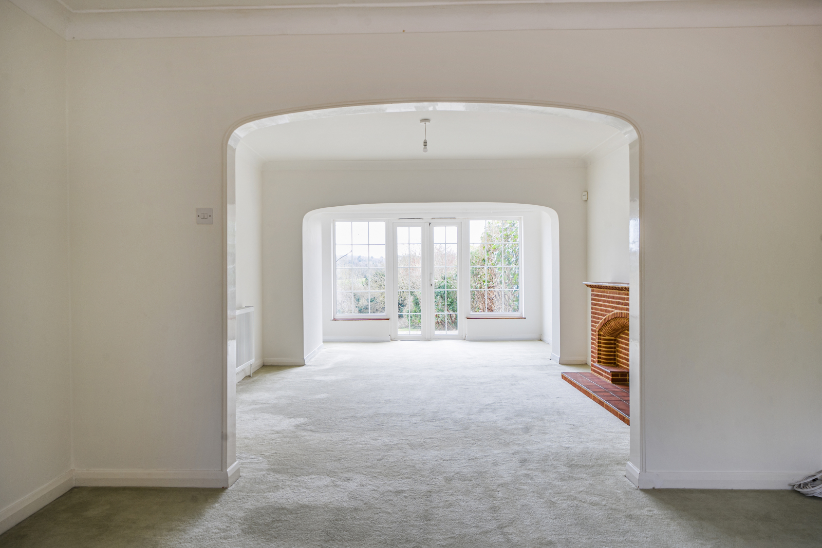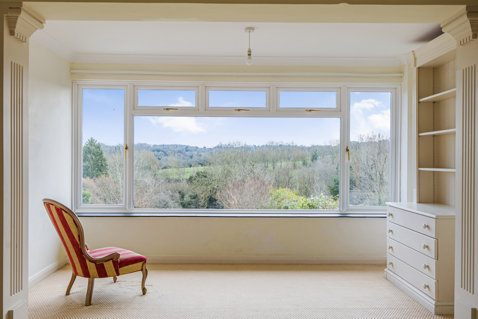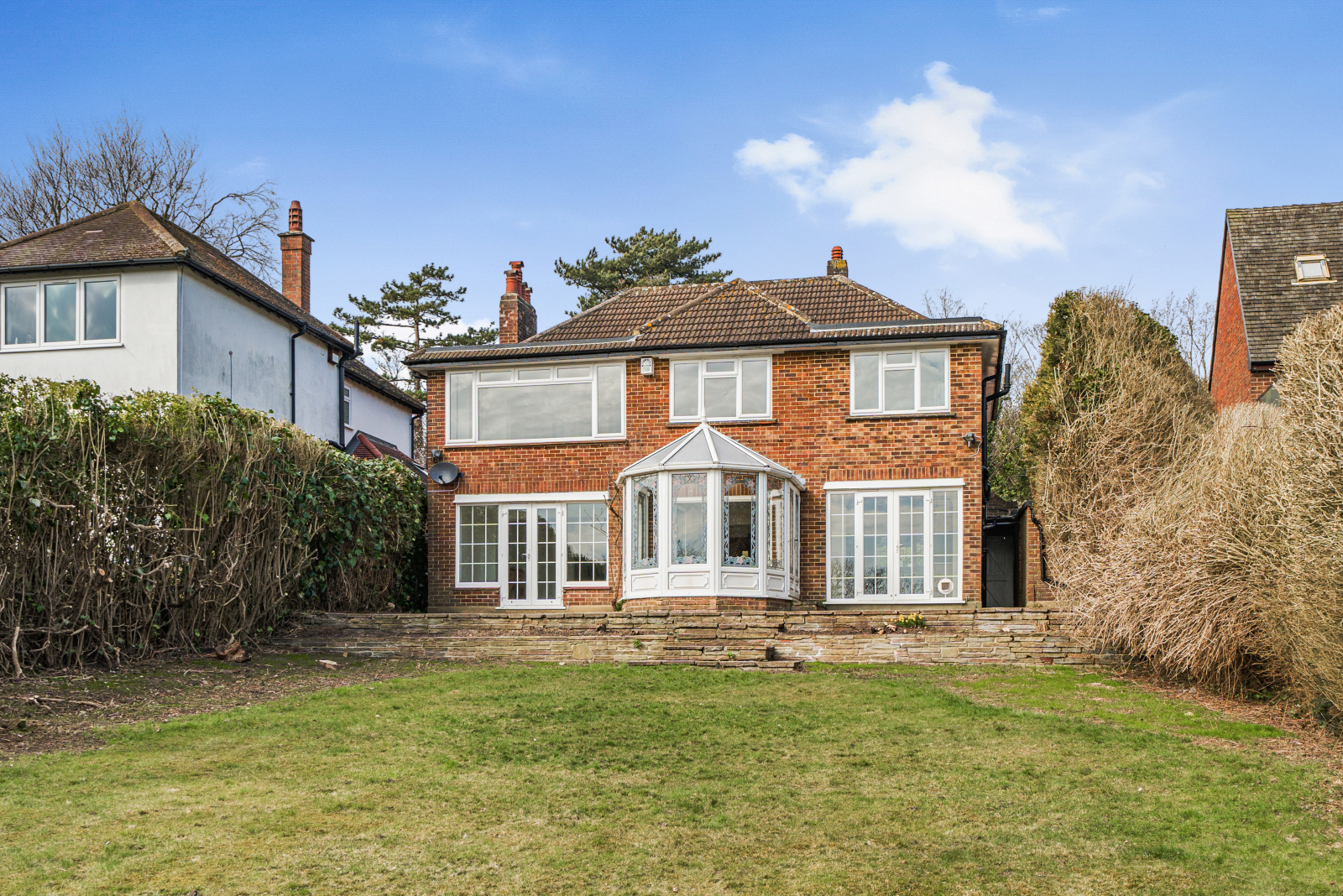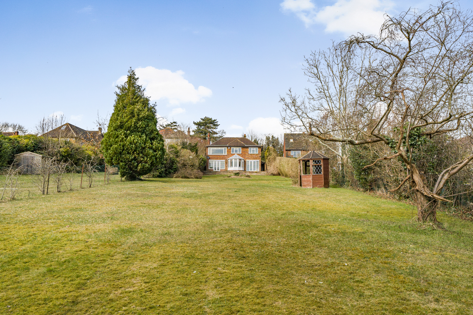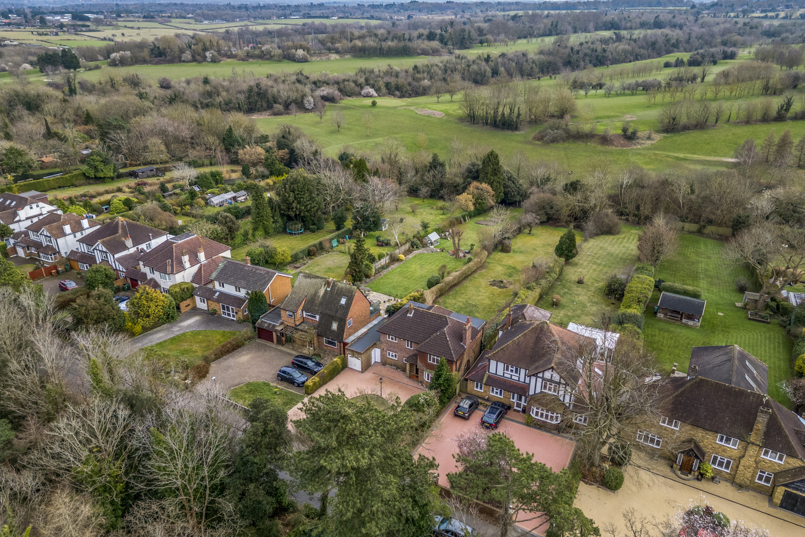 Situated on a picturesque tree-lined road, this stunning home features a spacious living room with a charming fireplace, a bright and airy dining room, and a delightful conservatory that presents stunning views of the expansive, well maintained South East facing garden (over 250ft) with uninterrupted views stretching out over the lush greenery of the golf course.