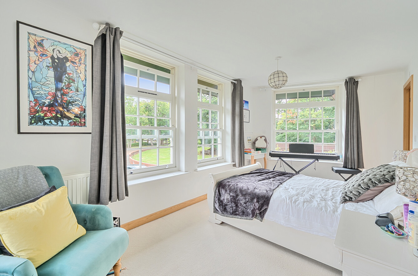 On the first floor, discover three spacious bedrooms, including one with a private en-suite, alongside a stylish family bathroom. The top-floor master suite is a true retreat, featuring a walk-in wardrobe and a luxurious double-ended bath.