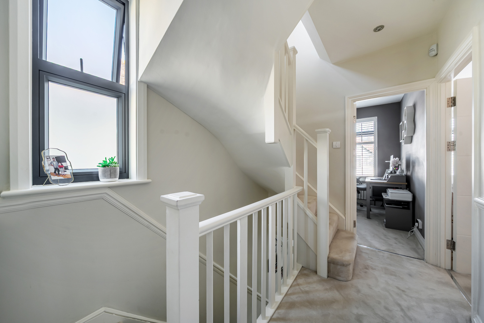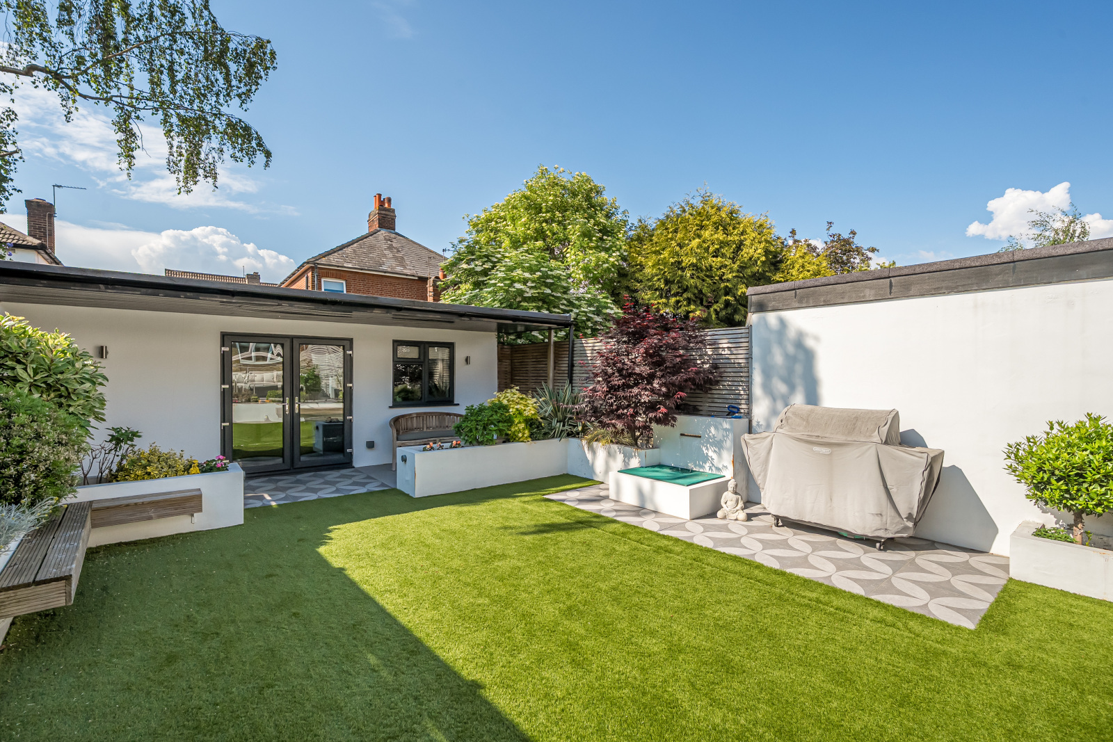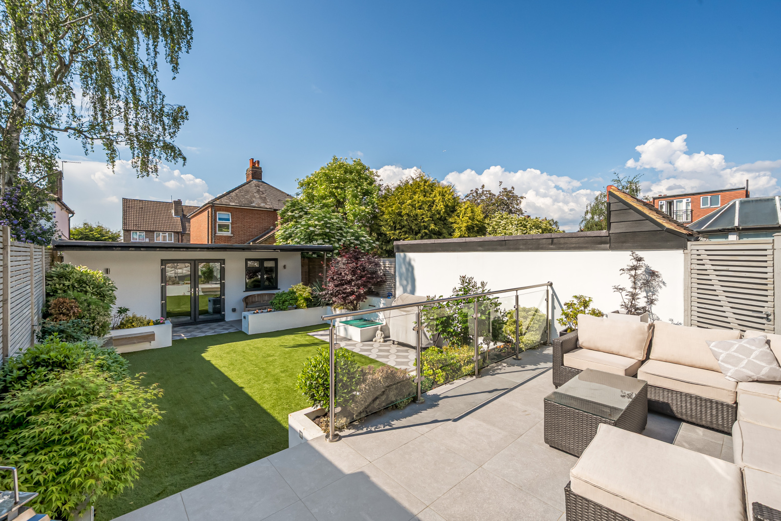 Upstairs, there are three bedrooms which are complemented by a luxurious family bathroom. On the top floor the stylish main bedroom has plenty of storage and a contemporary en-suite shower room. Thoughtfully extended and impeccably finished, every detail has been curated to the highest standard.