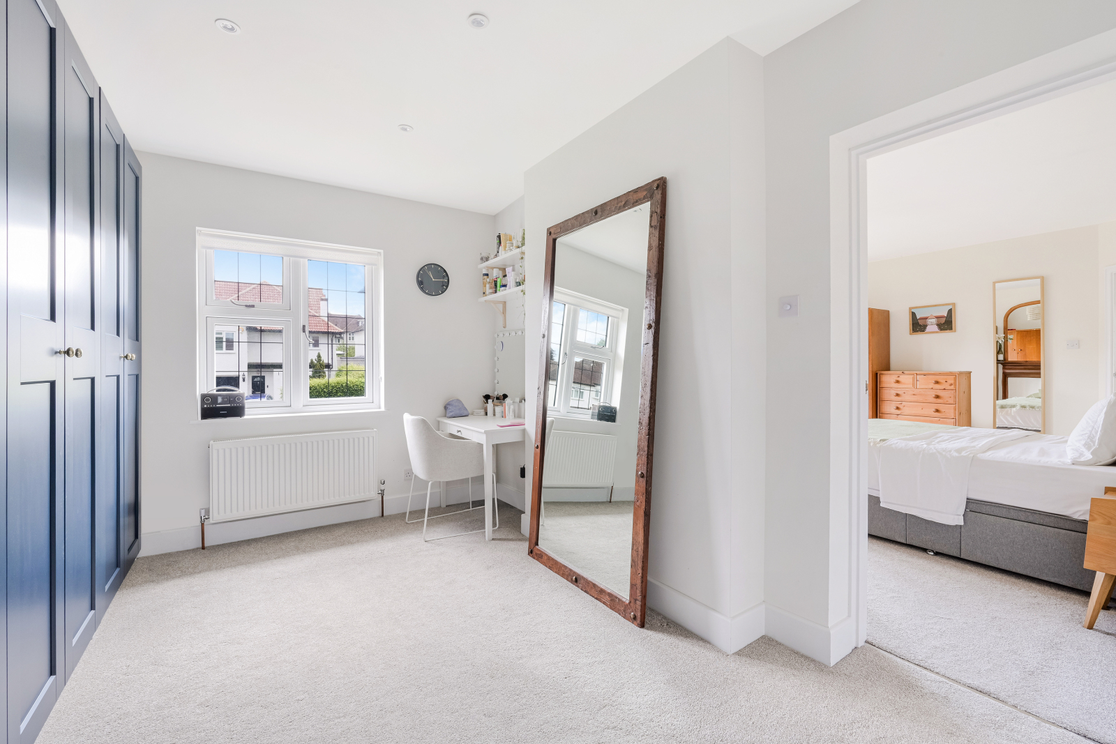There is a separate dining room, boasting another beautiful bay window. This space flows seamlessly into a snug area that can adapt to your needs, whether you envision it as a guest bedroom, a playroom for the kids, or a quiet retreat for your evening reads.