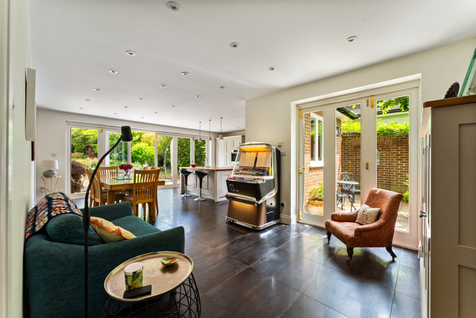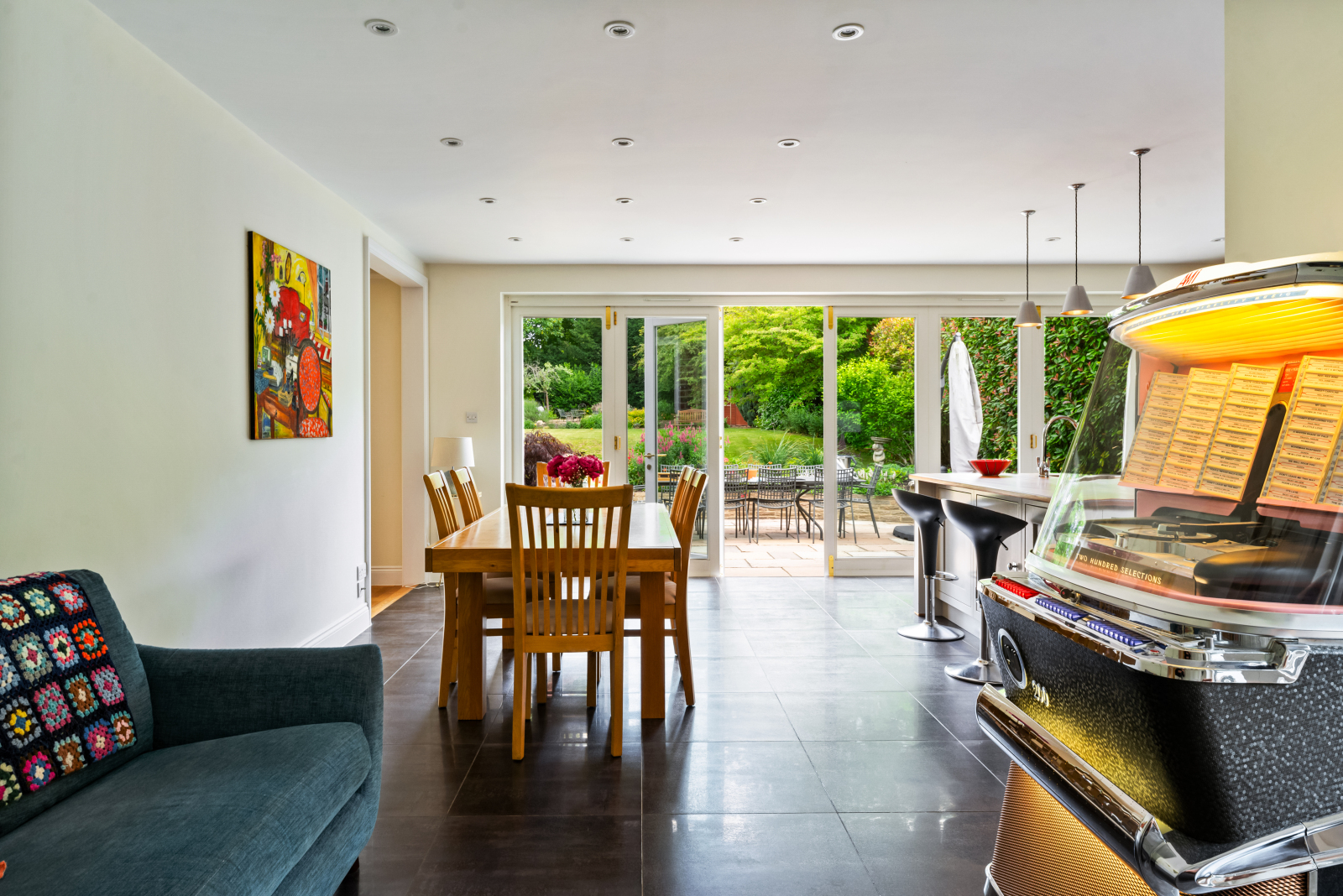 The heart of this home lies in its magnificent open-plan living spaces, perfect for both relaxation and entertainment. The well-appointed kitchen seamlessly integrates with the dining area, allowing for effortless hosting and family gatherings. From here, French doors lead to the established large garden, offering a serene oasis for outdoor enjoyment. Picture yourself unwinding on warm summer evenings or hosting memorable events in the beautiful surroundings. A delightful summer house further enhances the appeal of this exceptional outdoor space.