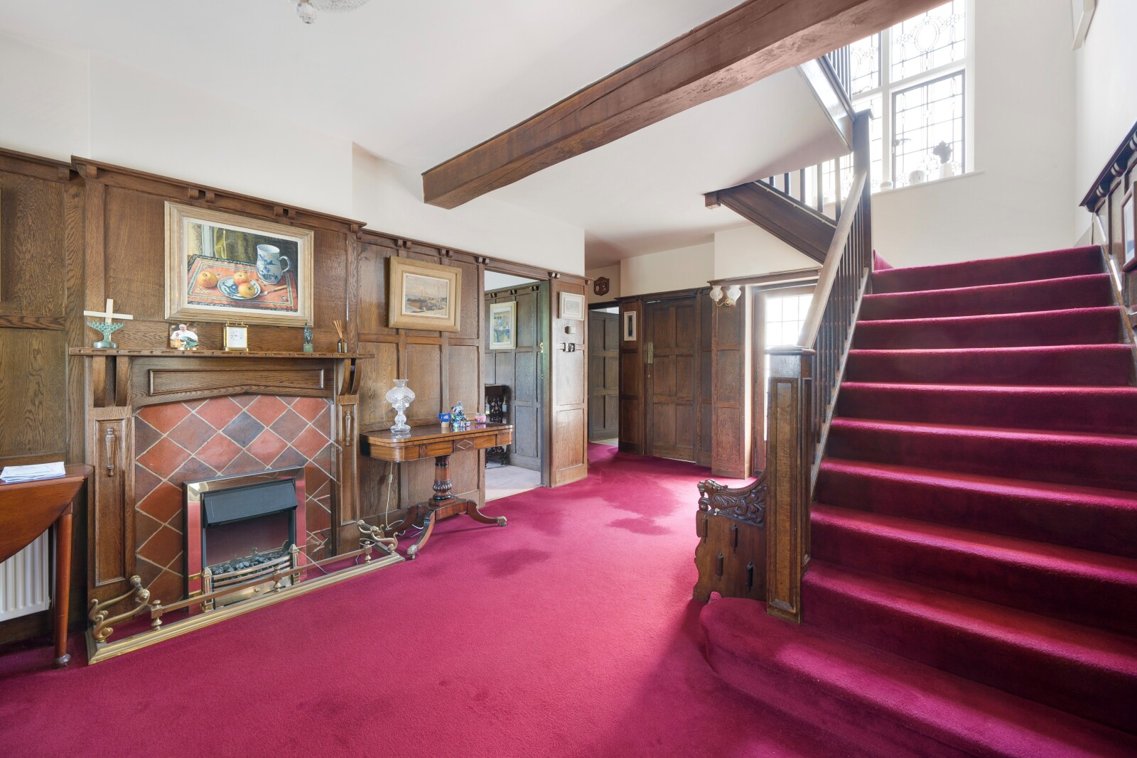 As you step inside, you're greeted by an awe-inspiring grand hallway that showcases an original fireplace and a charming staircase leading to the upper levels. The welcoming downstairs layout includes a generous sitting room with double doors opening into a bright conservatoryideal for those cosy family gatherings or a peaceful retreat with your favourite book.