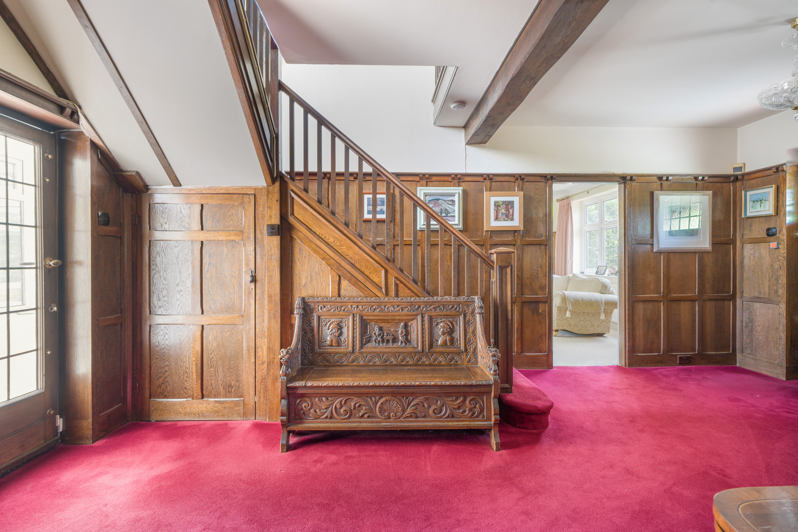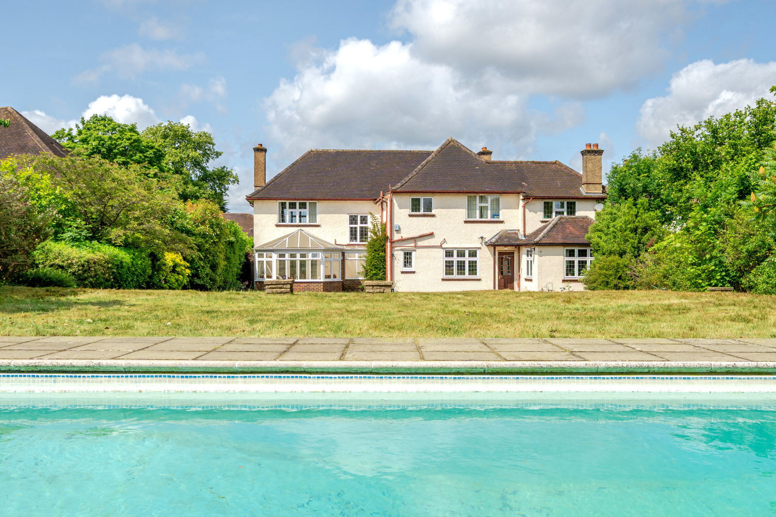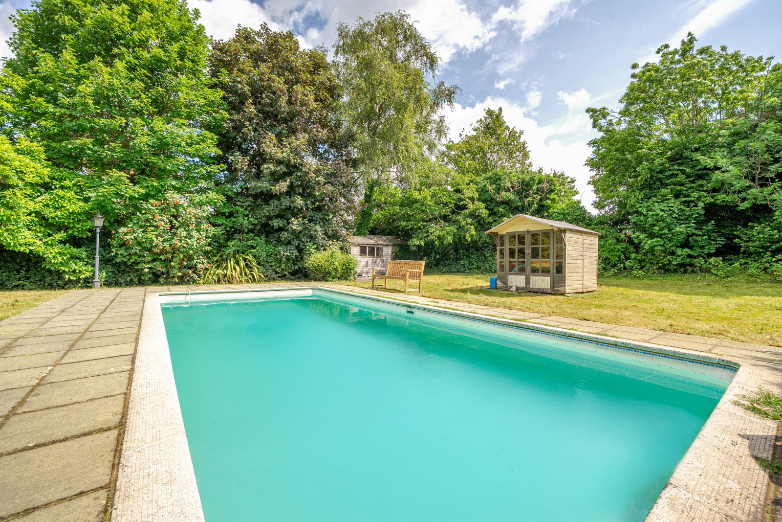 The outside space is nothing short of extraordinary. Enjoy sunny days in the beautifully landscaped rear gardenyour own private oasis featuring luscious lawns, majestic mature trees, and an inviting outdoor swimming pool, perfect for summer gatherings and enjoying those sunny afternoons. The front of the property features a private carriageway driveway surrounded by greenery, adding to the home's appeal.