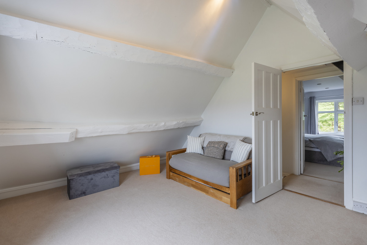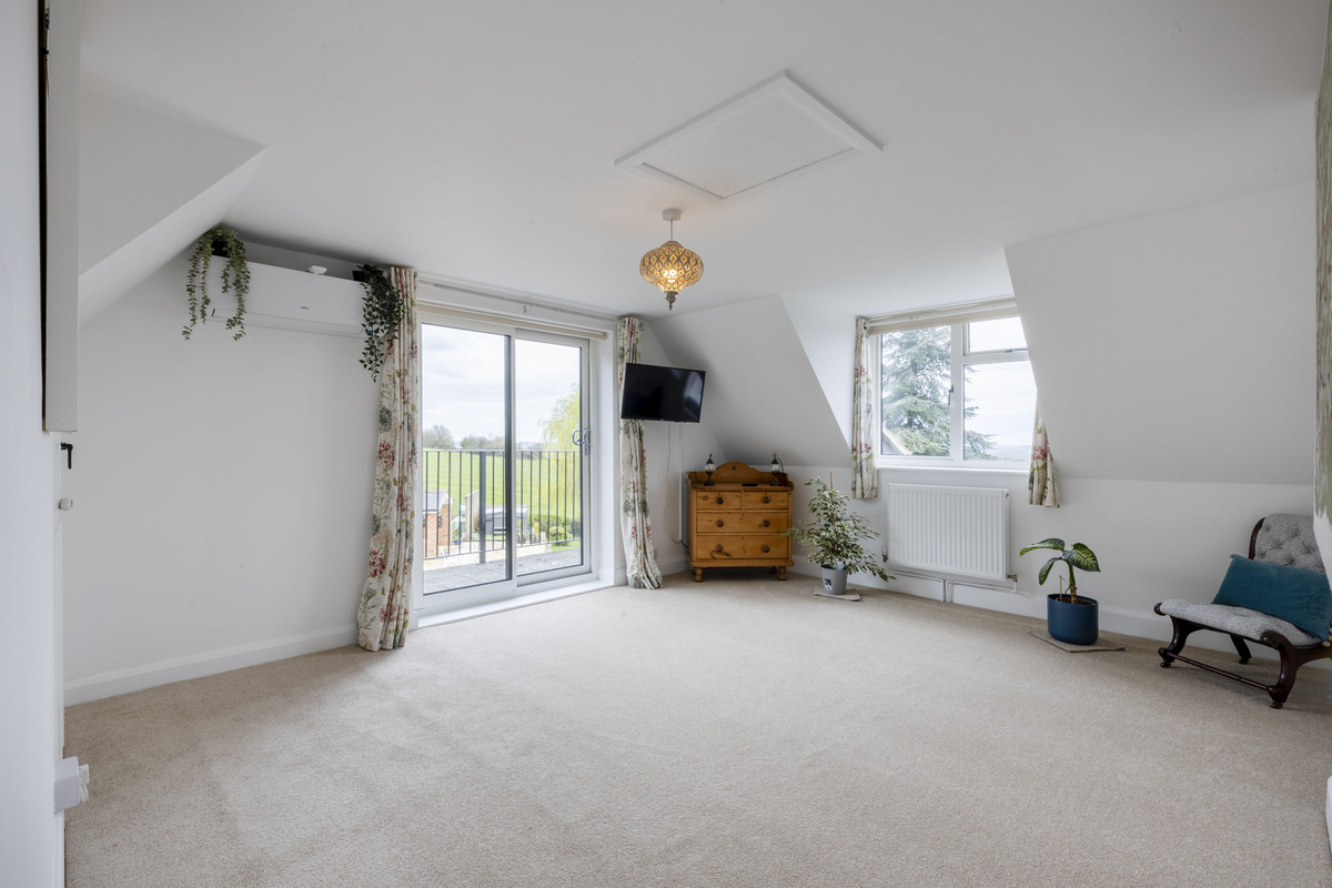 The first floor of Foxfield offers two generously proportioned bedrooms, each offering comfort and charm. The standout principal bedroom features a spacious dressing area, an en-suite bathroom, and glazed doors that open onto a sun balcony, perfect for enjoying the picturesque views. The second bedroom is dual aspect and also enjoys breathtaking views.