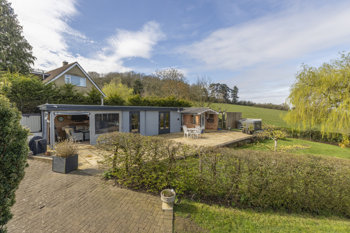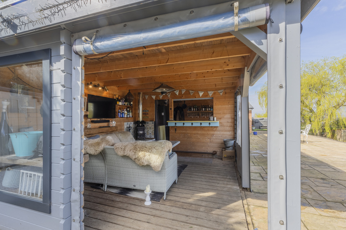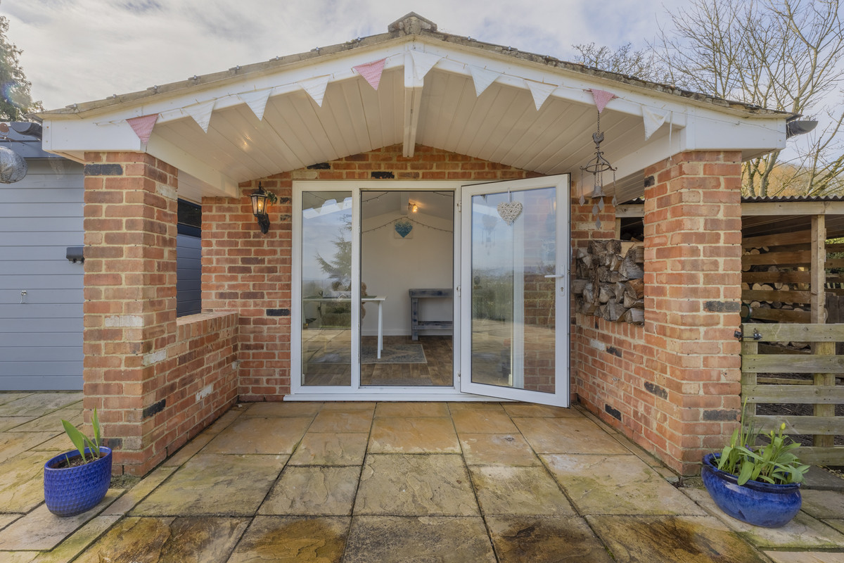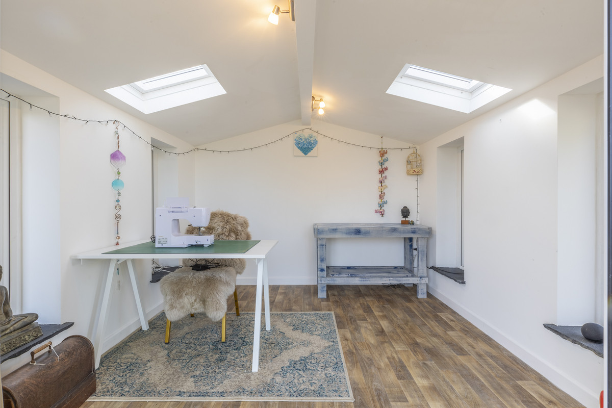 A delightful brick-built studio offers a versatile space, perfect for use as a home office, creative studio, hobby room, or peaceful garden retreat.