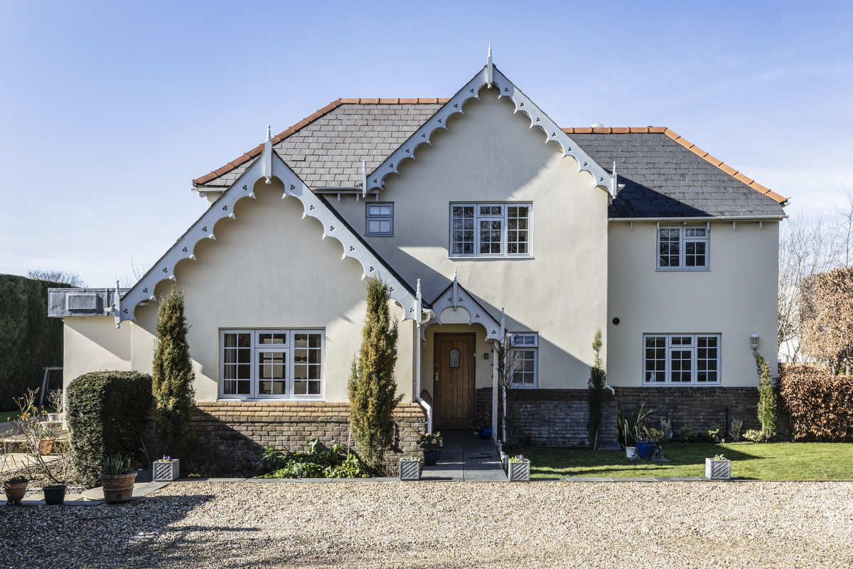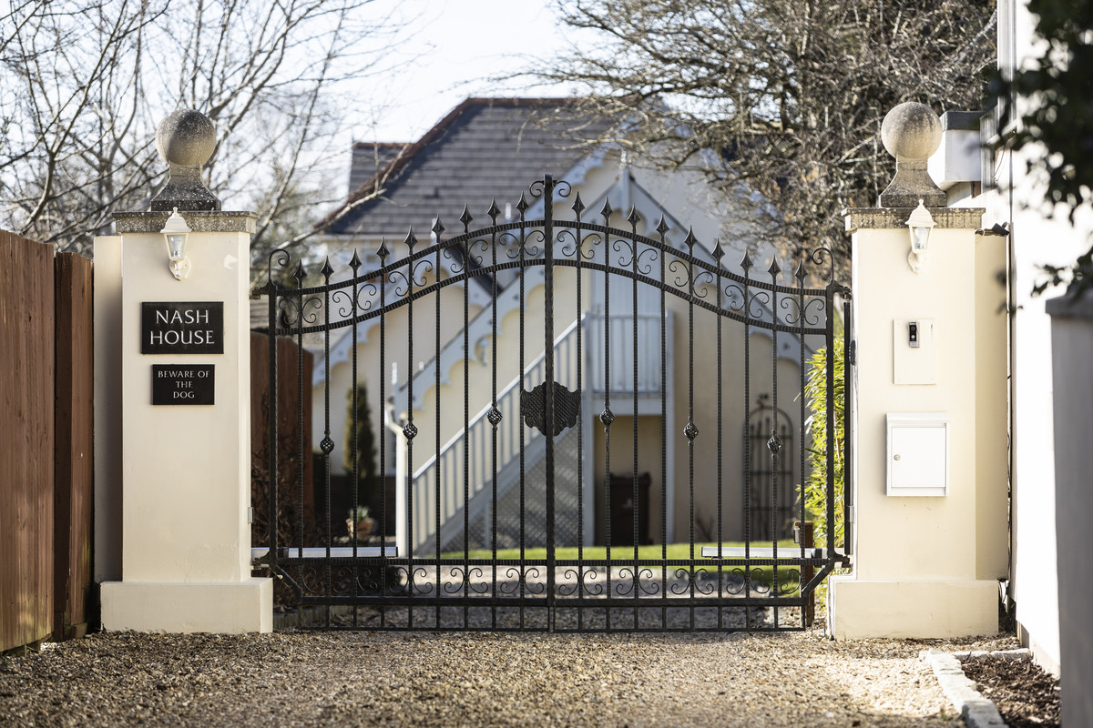 Nash House enjoys an enviable position that seamlessly combines convenience and privacy, nestled within a secluded and tranquil plot near the heart of Charlton Kings. Accessed via a gated gravel drive, the approach winds past a detached double garage to a spacious parking area, offering an impressive family home.
