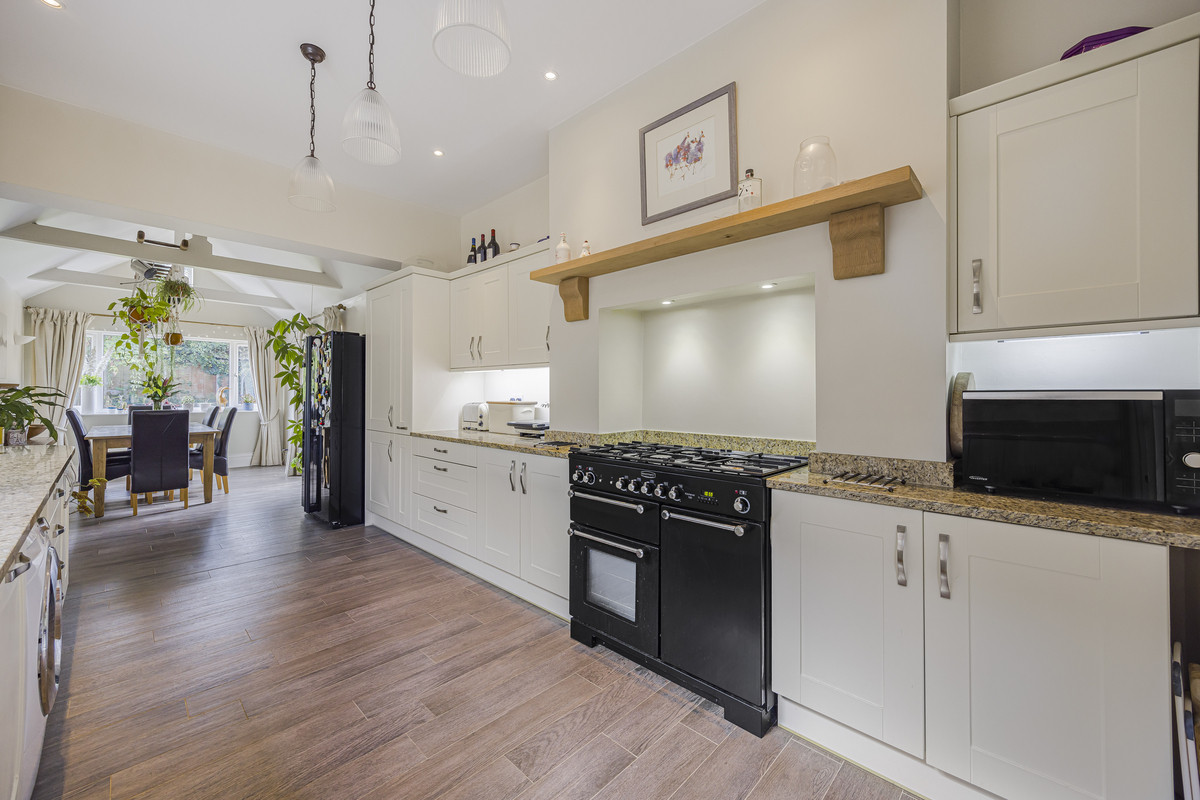Upon stepping inside, the sense of scale and proportion becomes instantly apparent. High ceilings, generous windows, and characterful detailing set the tone for the accommodation. The kitchen/dining room is undoubtedly the heart of the home. This expansive space blends modern practicality with period charm. French doors open directly onto the garden terrace, creating an idyllic setting for both relaxed breakfasts and vibrant summer entertainment. A handsome living room offers a warm and inviting retreat, while the additional reception room - equally generous in size - lends itself effortlessly to a secondary sitting room or formal dining space, playroom, or refined home office. There is also a downstairs cloakroom and useful understairs storage.