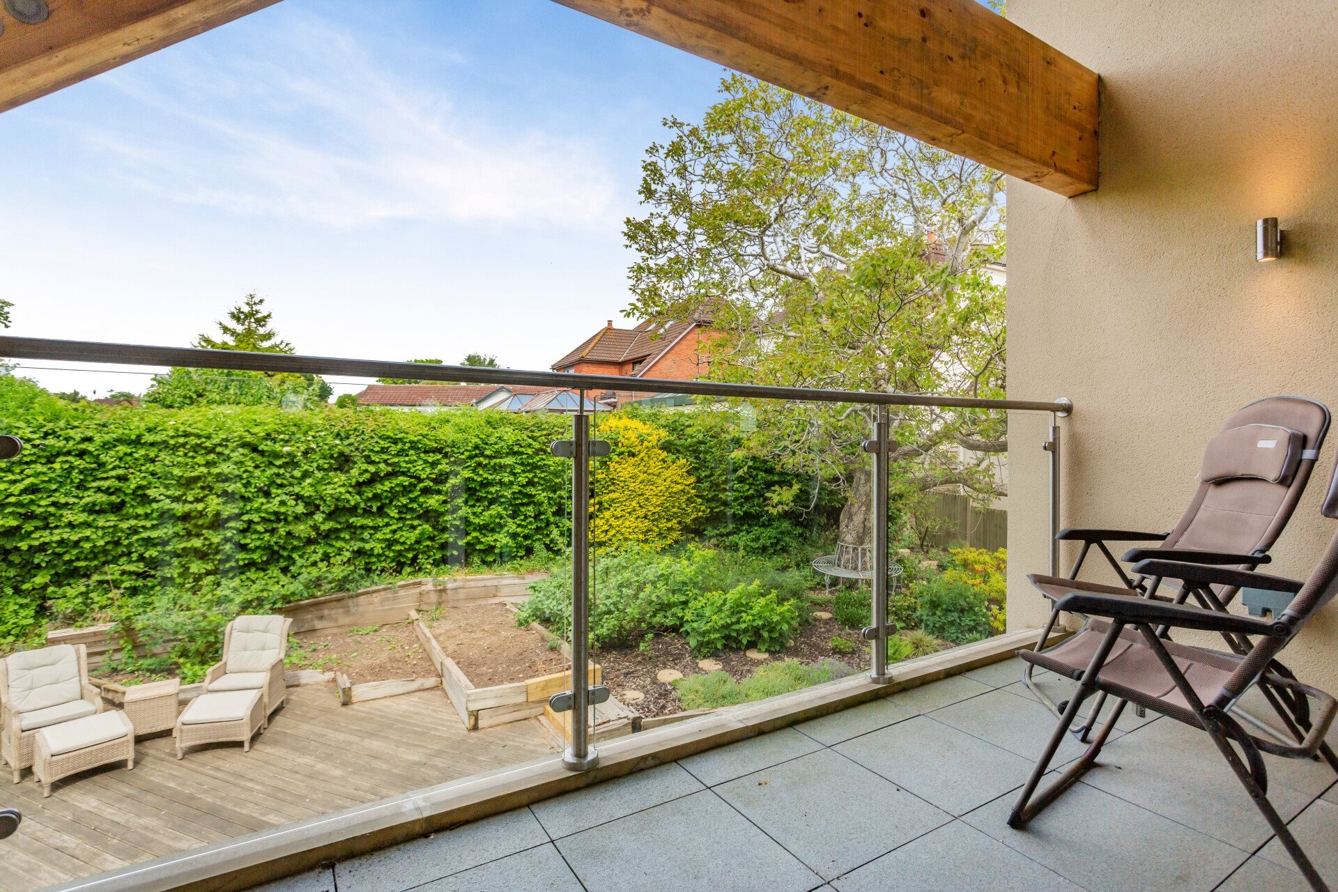 The clever design of the property means that the back garden is an extension of the house, with the east-facing balcony providing shelter for a patio area that continues past the two French windows leading from the two larger bedrooms.