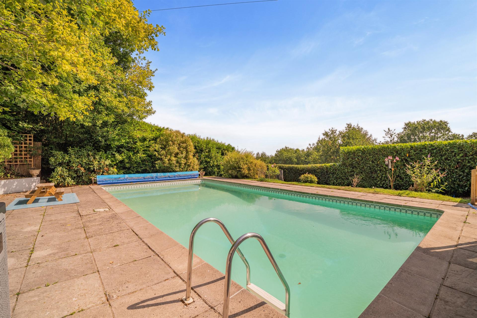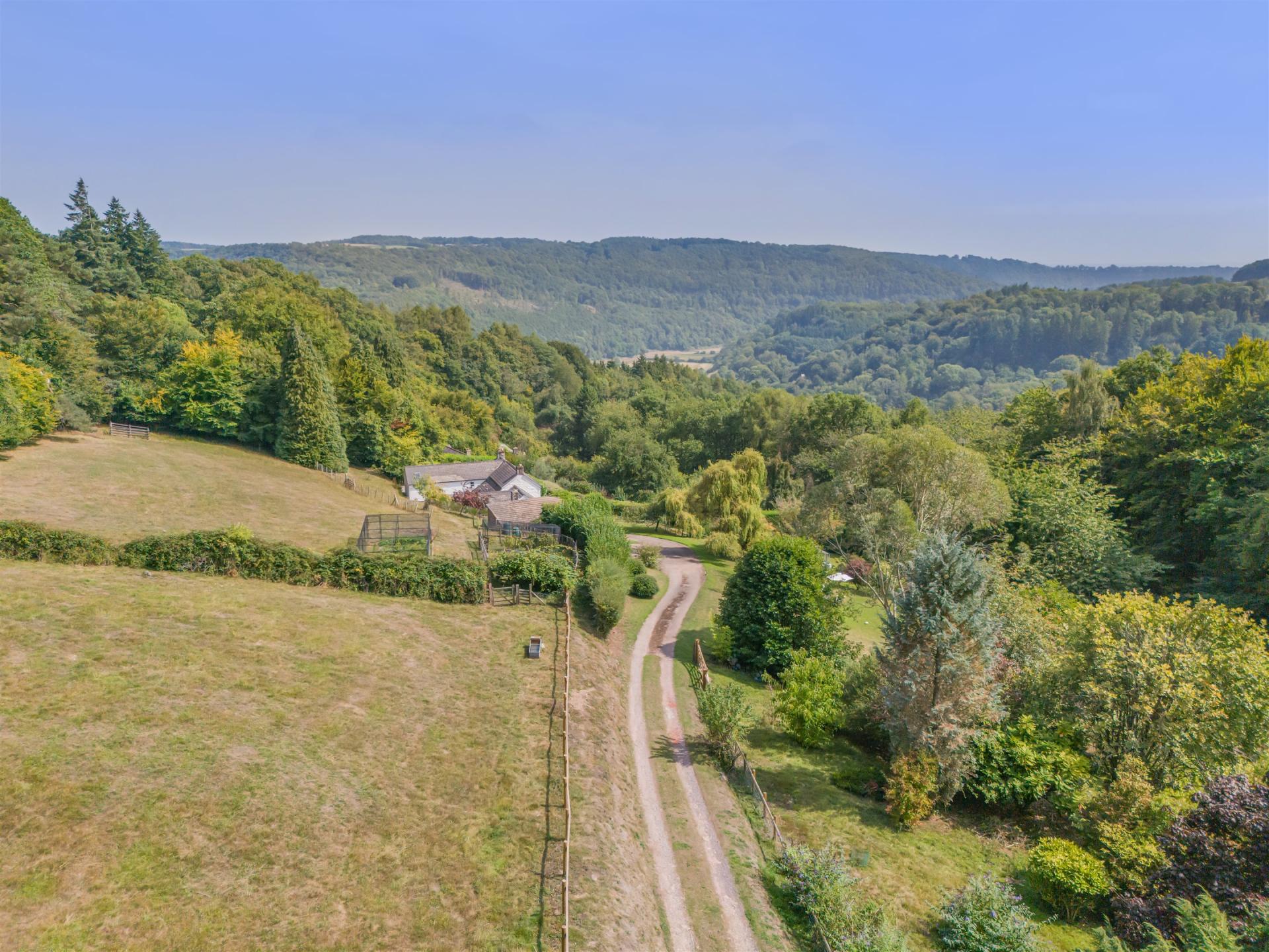 Outside - Halewood sits within a peaceful, wooded valley and is reached through discreet electric gates that open into a driveway flanked by post and rail fencing. On one side there are two large paddocks suitable for ponies or other livestock and alive with seasonal wild flowers and orchids, with a backdrop of mature woodland. The grasslands gently descend down towards an enclosed duck pond, which is fenced off for chickens. Immediately surrounding the house are gardens planted with specimen trees and mature shrubs, with a heritage-style greenhouse and cold frames and a large vegetable patch for keen growers, and an old orchard. To one side of the cottage is a large heated swimming pool with sun terraces, bordered by a thick laurel hedge. In total, the house is surrounded by around 2.46 acres. Beyond it is the Barbadoes Wood. Living at Halewood means being close to nature with deer from the woods visiting the property on occasion, along with swallows and mallard ducks returning every year to nest in the grounds. A wood and timber outhouse beyond the cottage has potential to be converted into a studio or annexe, subject to planning permission. There's also plenty of room for parking.