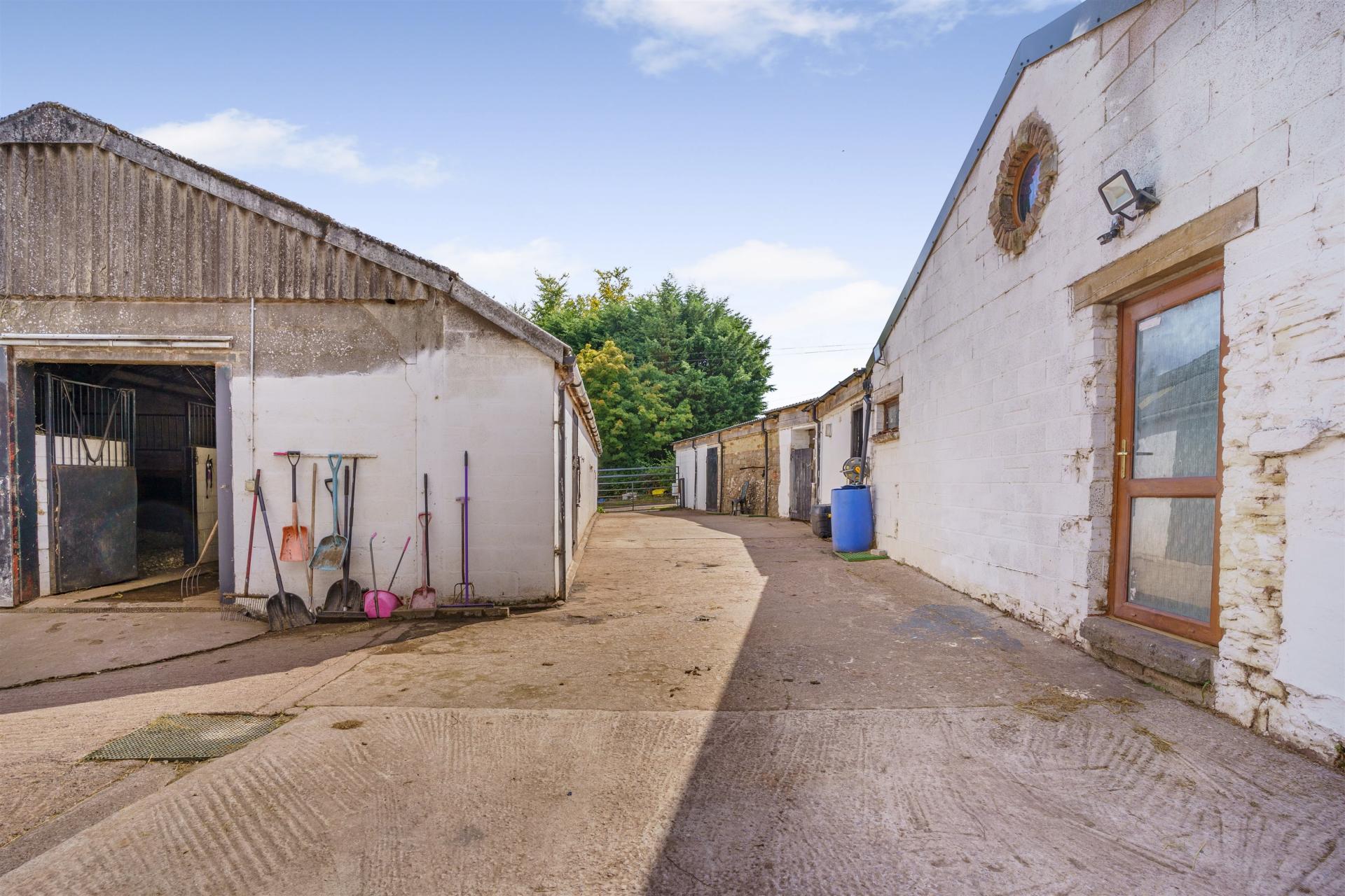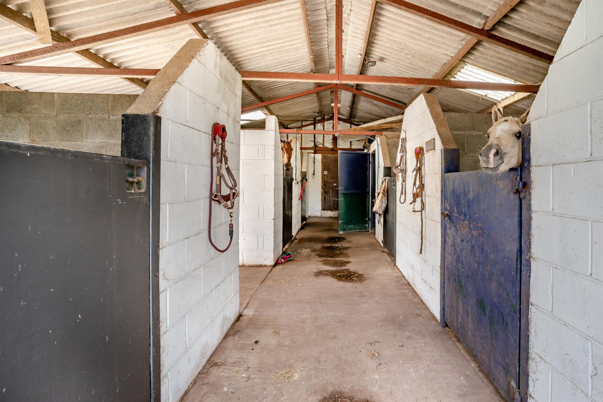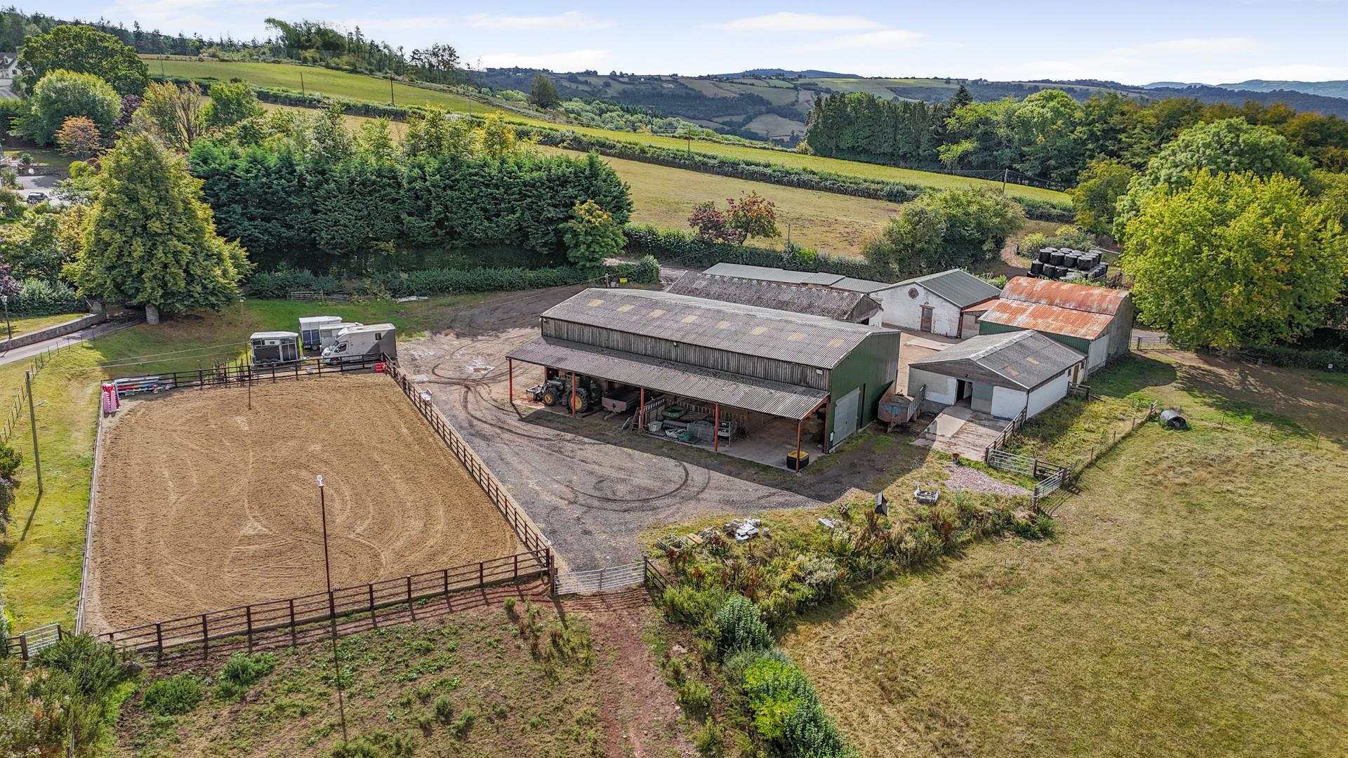 Outside - As you step outside of Sunnybank Farm it is a true haven for horse lovers, set across 40 acres of rolling countryside. The property features two stable blocks, two agricultural barns, a Dutch barn, secure tack rooms, expansive fields, and a professionally surfaced arena with sand and carpet fibre.