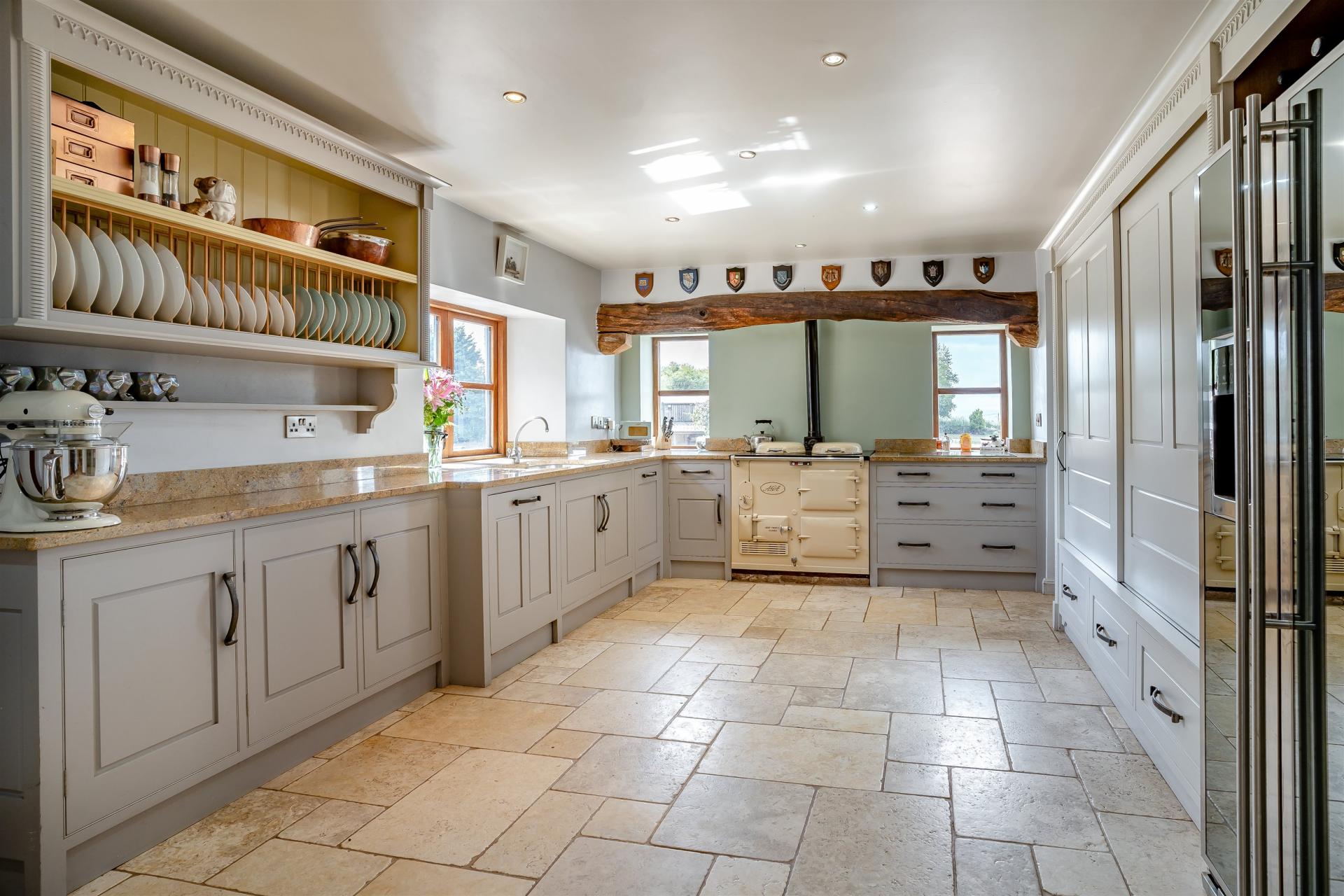Entering Sunnybank Farm, you are immediately welcomed into a beautifully appointed kitchen, where seamless cabinetry and a bespoke larder cupboard combine style and practicality. The open layout creates a sense of space and effortless flow, perfectly suited to modern family living and entertaining.