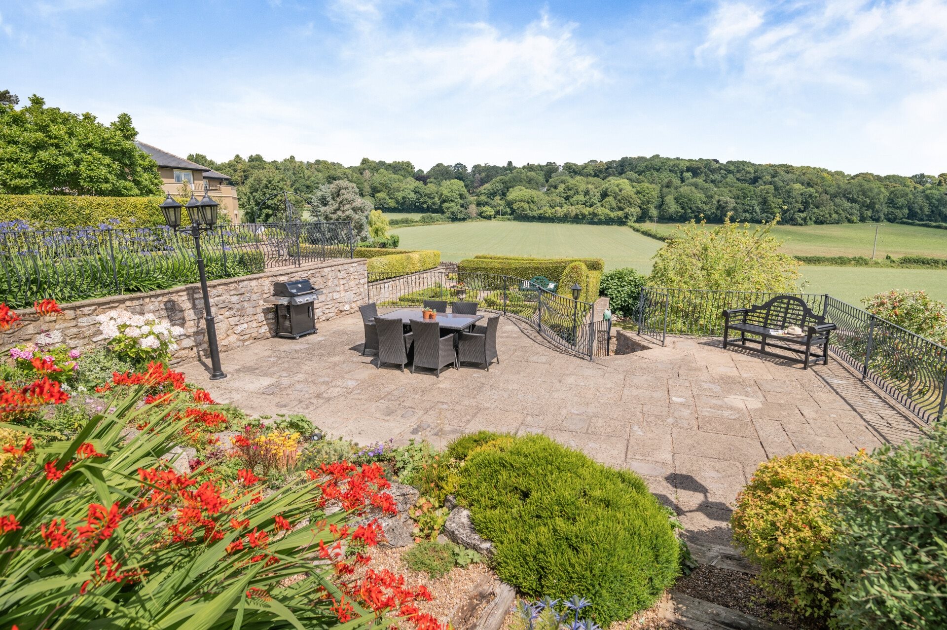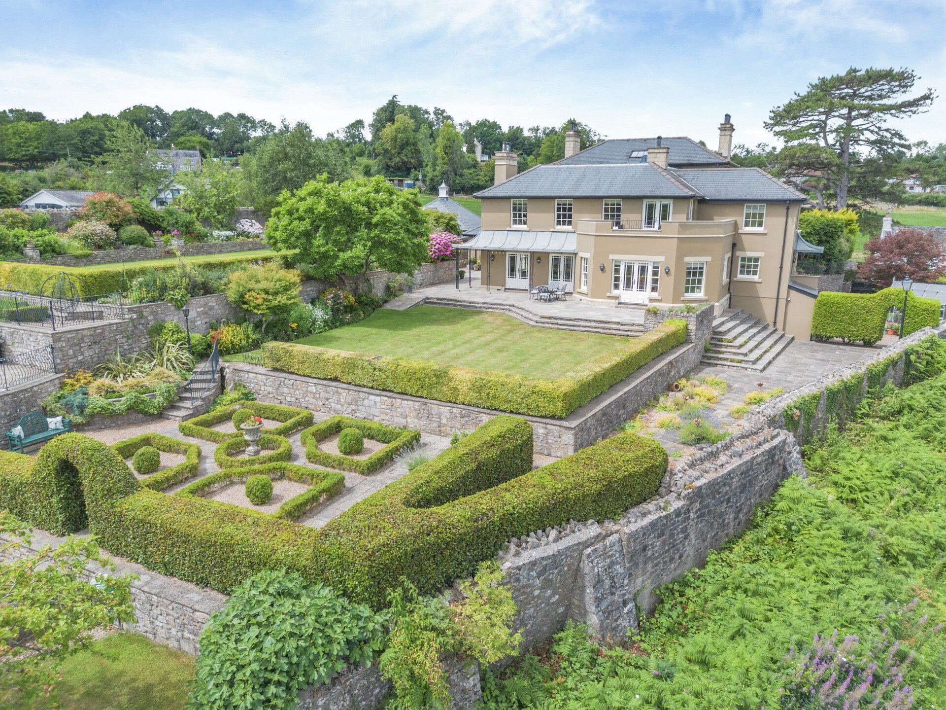 Set within approximately six acres, the gardens are nothing short of spectacular, thoughtfully crafted to create a succession of intimate, split-level garden rooms and sun-drenched patios. These outdoor spaces include a formal parterre, secluded courtyards, charming gravel gardens, a delicate rockery, and a serene pond gently nourished by a soothing waterfall. Mature specimen trees, a fruitful orchard, and graceful rose arches frame sweeping lawns and vibrant borders, bursting with seasonal colour and texture, offering year-round interest and endless opportunities for peaceful contemplation or elegant entertaining.