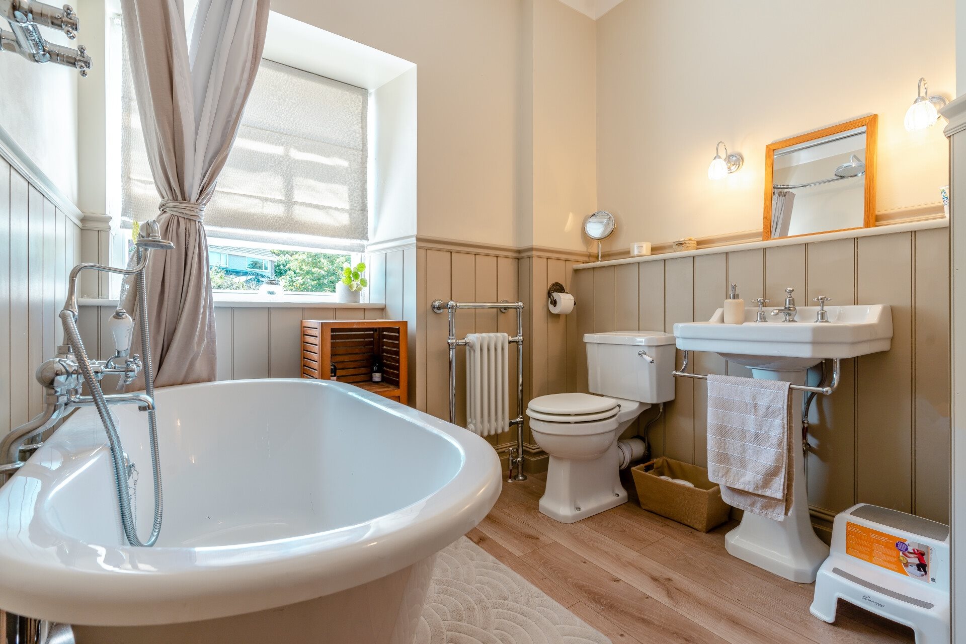 Upstairs, the five well-proportioned bedrooms offer a versatile layout to suit families of all sizes. Two bedrooms feature luxury en-suite bathrooms, designed with contemporary fixtures while respecting the home's period elegance. Two additional family bathrooms serve the remaining bedrooms.