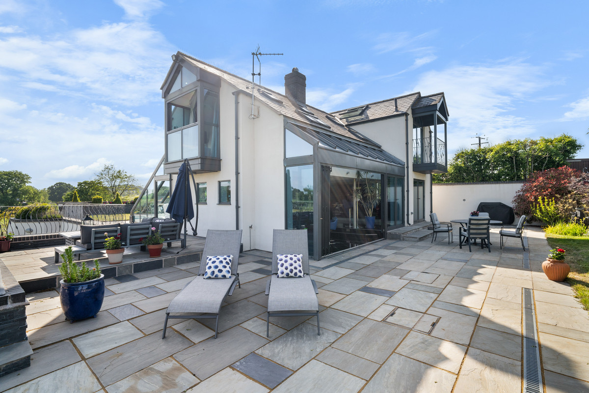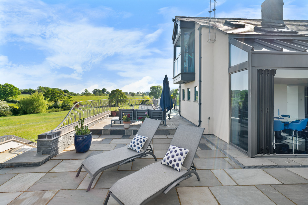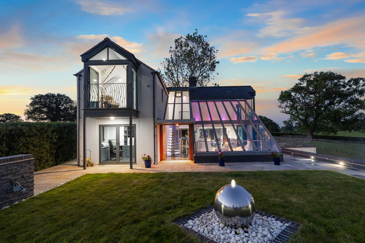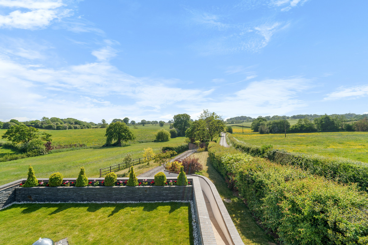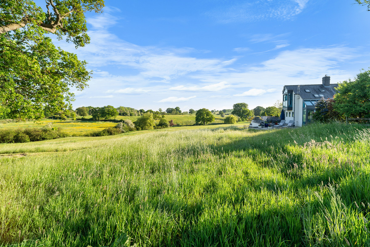 An exceptional modern residence located in 3.5 acres and surrounded by tranquil meres, the rolling hills of North Shropshire, and the Cheshire Plains.