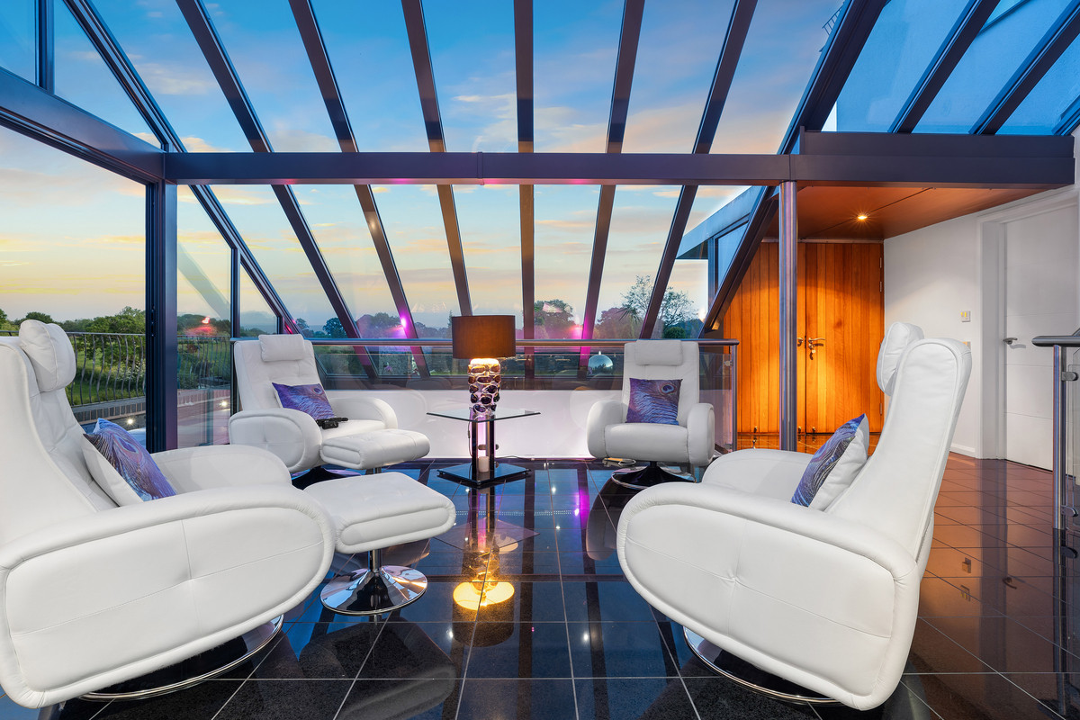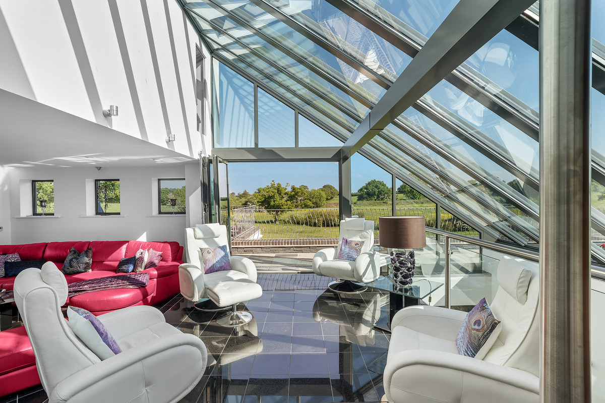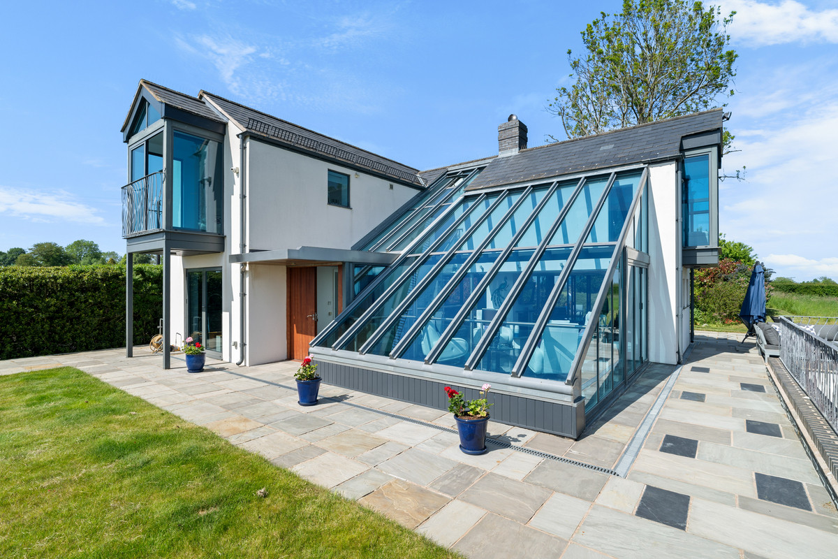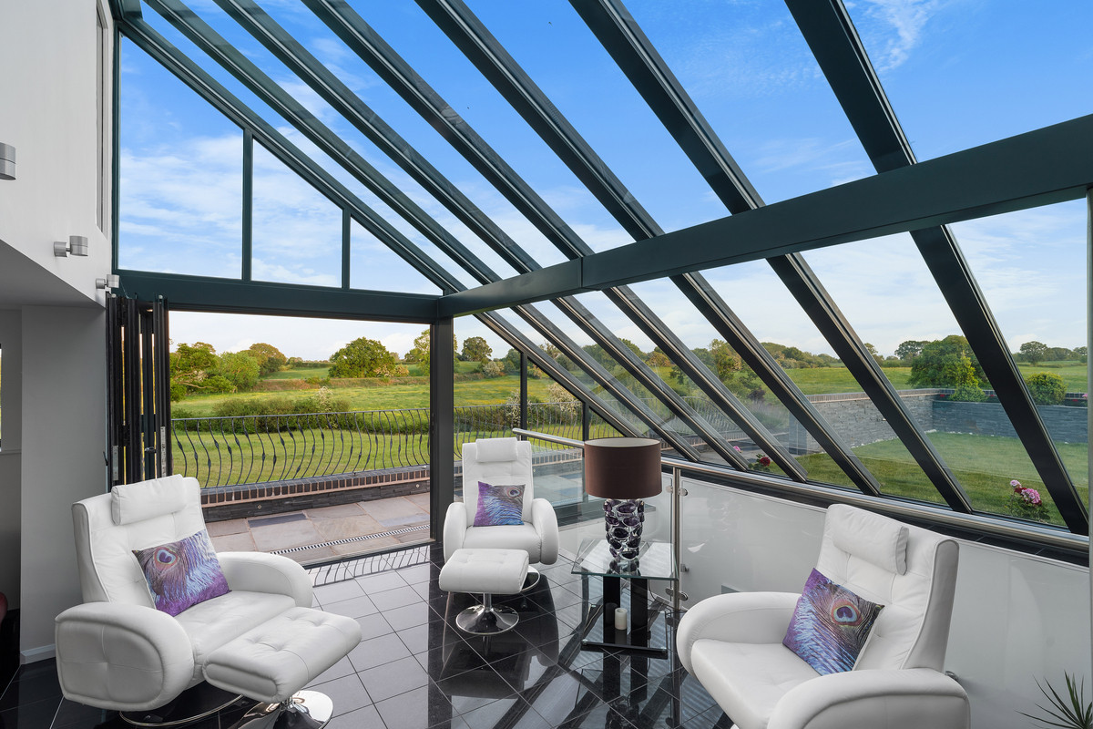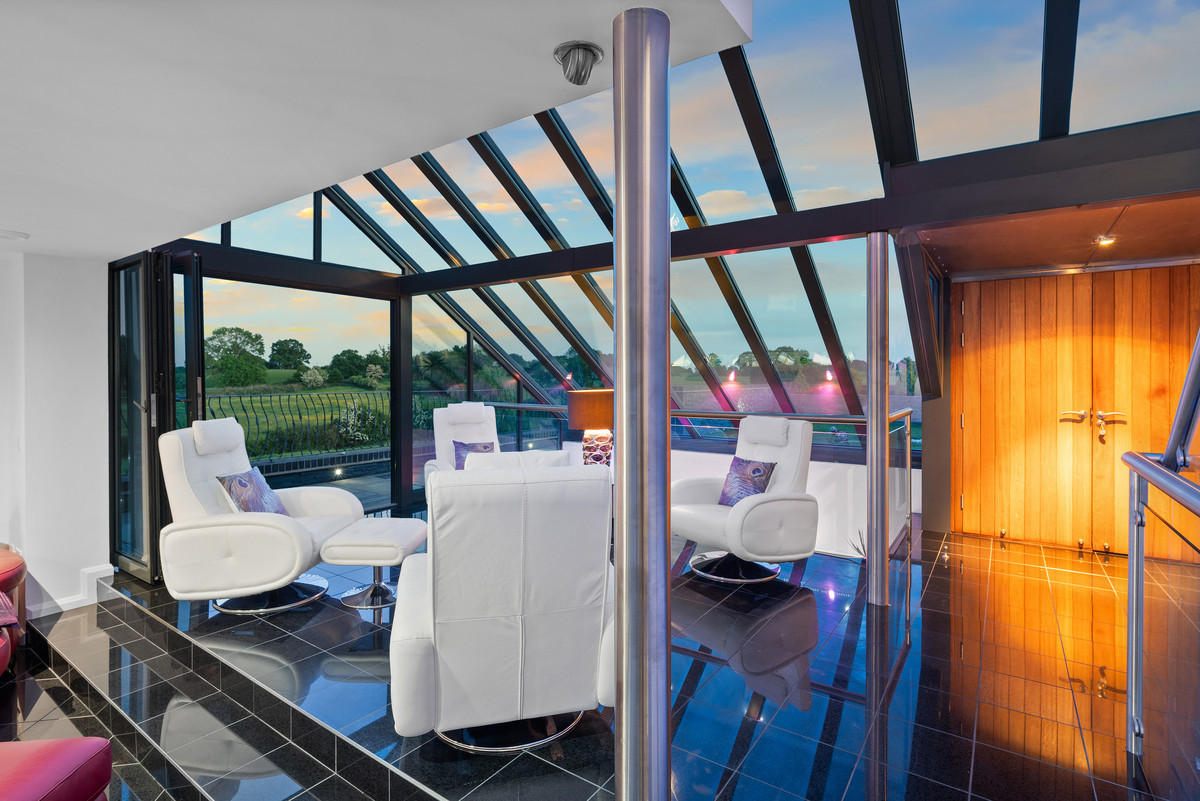 An exceptional modern residence located in 3.5 acres and surrounded by tranquil meres, the rolling hills of North Shropshire, and the Cheshire Plains.
