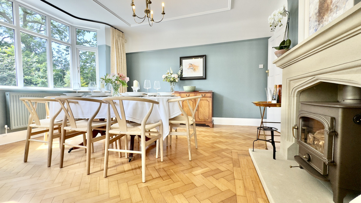 A wide and welcoming hallway sets the tone with its elegant proportions and heritage features. Two double reception rooms offer generous spaces for entertaining or everyday family life. Both feature Clearview wood-burning stoves, bay windows, and handcrafted fireplaces, creating a sense of warmth and sophistication.