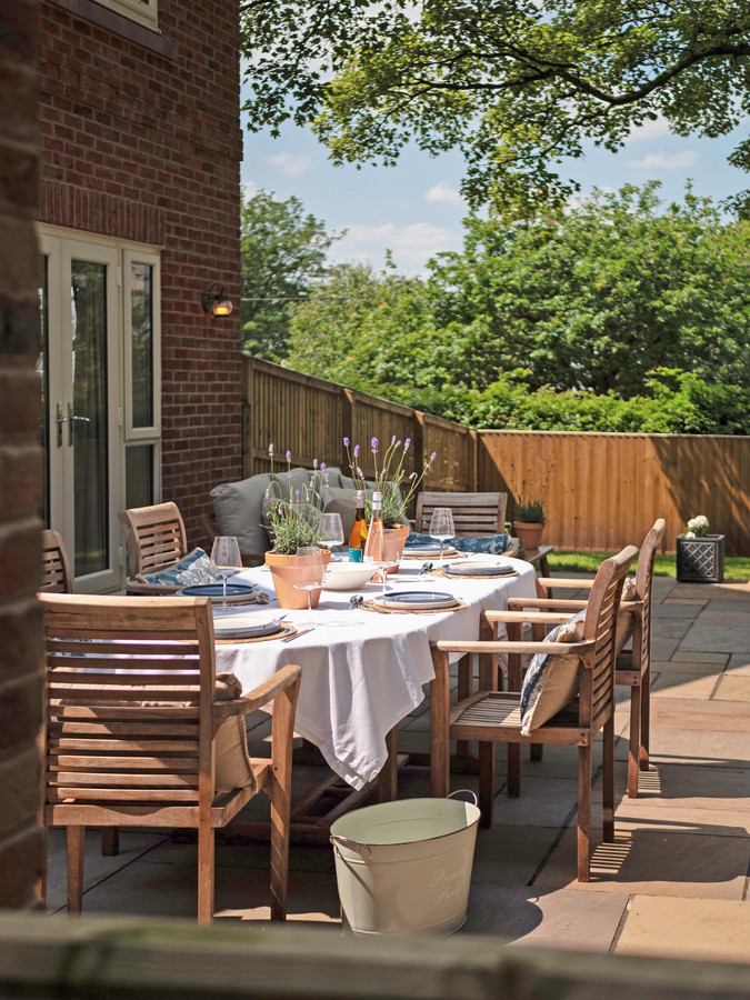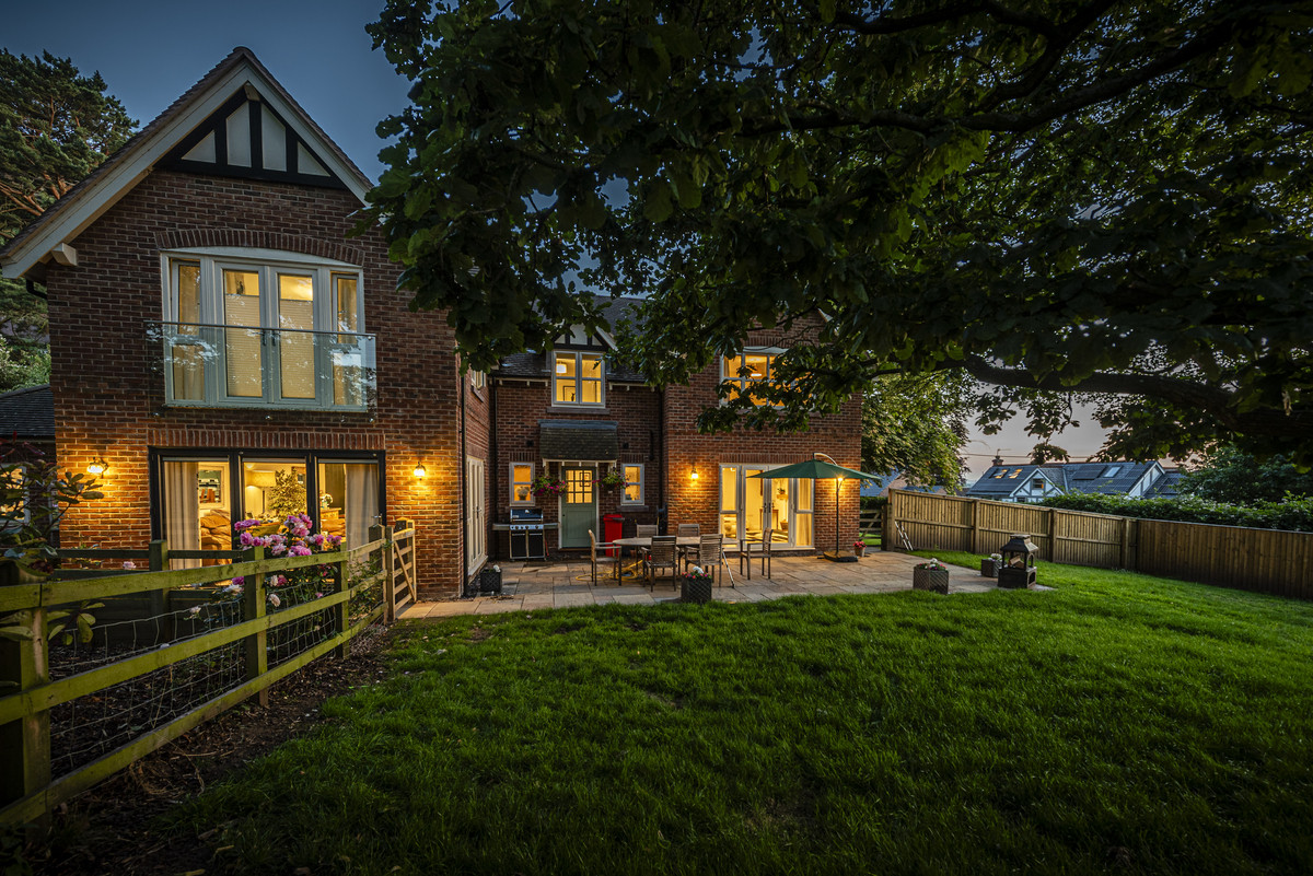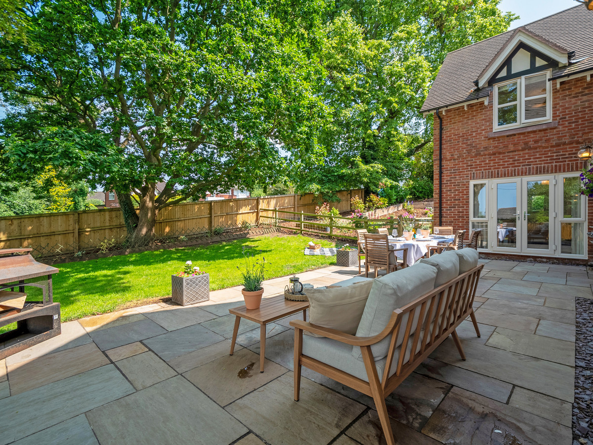 Set behind electric gates, Trafford House is approached by a sweeping driveway with space for multiple vehicles and access to a double garage. The landscaped, wrap-around gardens have been thoughtfully designed to offer multiple areas for relaxation, al fresco dining and family play — from sunrise coffee to evening sunsets.