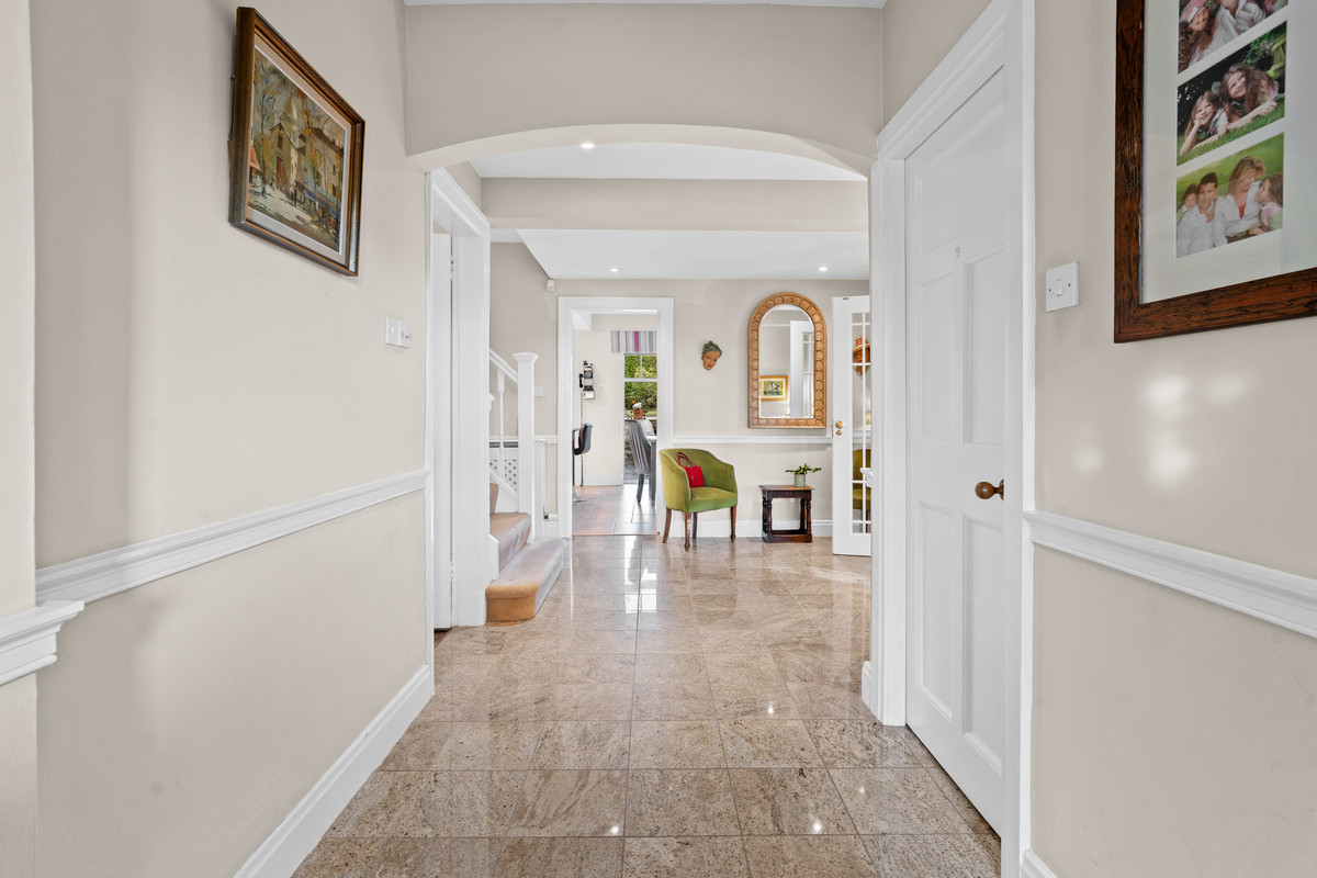 The bright and welcoming reception hall immediately sets the tone for this distinguished residence, introducing a sense of light, elegance, and effortless flow that continues throughout the home.