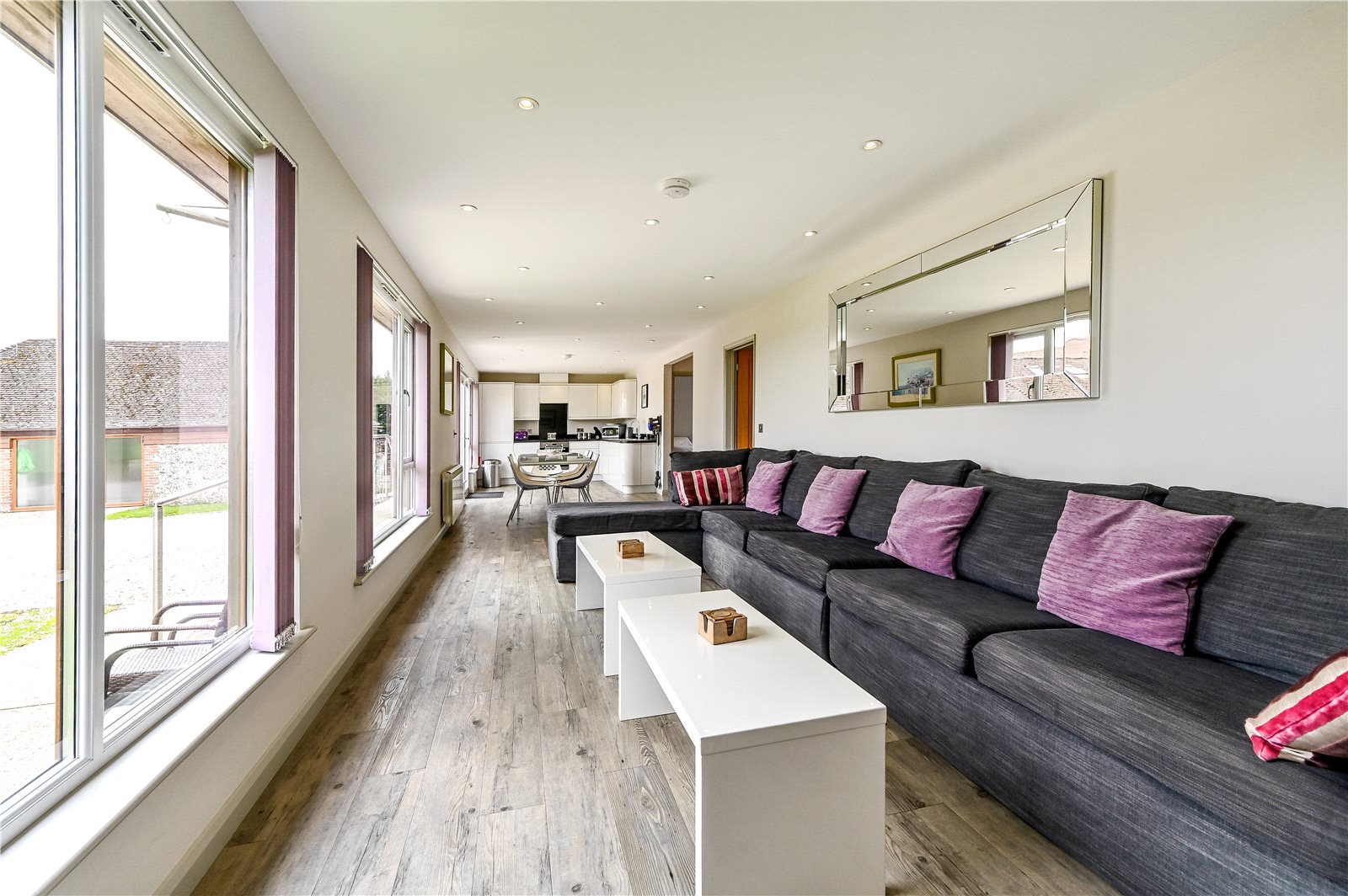 This expansive dwelling showcases a stunning open-plan kitchen/dining/family room, three double bedrooms, and a luxurious bathroom with a separate shower. Additional amenities include access to a raised decking area boasting views over the formal gardens.