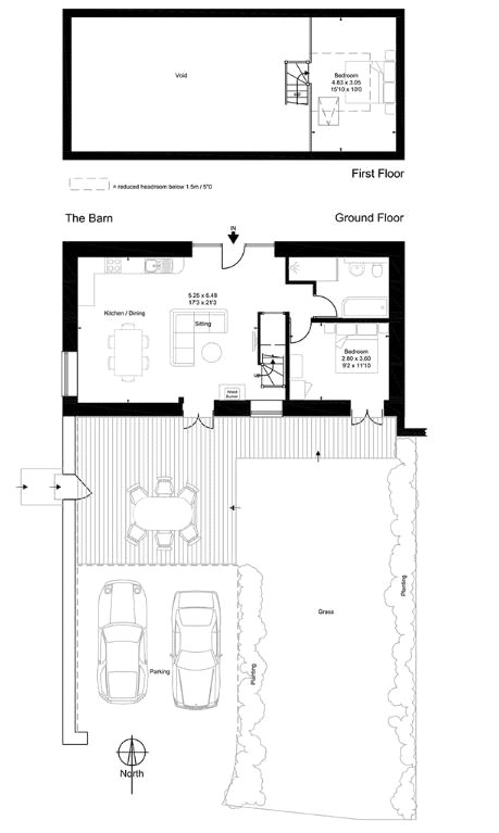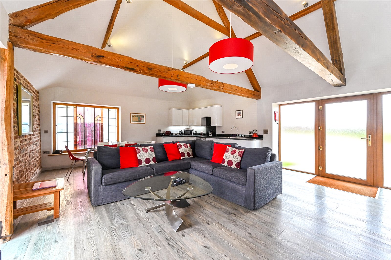 The Barn: Situated at the western end of the farmhouse, The Barn radiates character and charm. Its open-plan vaulted kitchen/living area features a wood-burning stove, exposed beams, and brick walls. Additionally, it offers a mezzanine bedroom or study, a spacious double bedroom with French doors leading to the garden, and a contemporary bathroom. The Barn provides access to a private decking and garden area through the open plan living space.