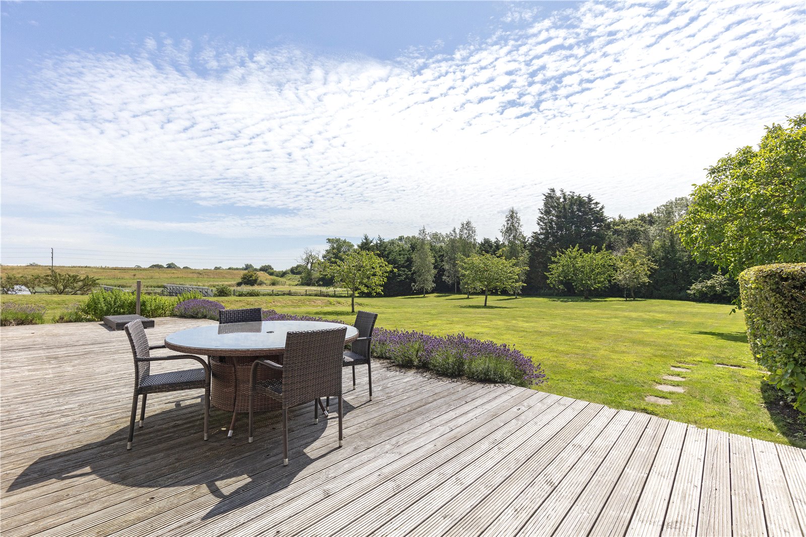 Spanning the rear of the farmhouse, the inviting sitting room invites relaxation and entertainment within its open-plan ambiance. Exposed beams infuse rustic charm, while a captivating log burner serves as the focal point, fostering an inviting atmosphere. Adjoining this space, a tranquil seating area offers picturesque views of the sprawling gardens. While adjoining double doors lead to a snug. French doors open onto a raised decking area, seamlessly connecting indoor and outdoor living spaces.