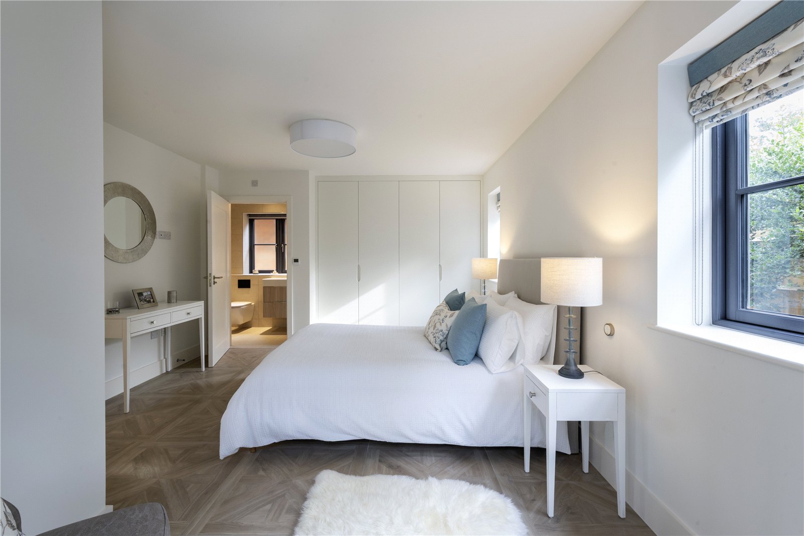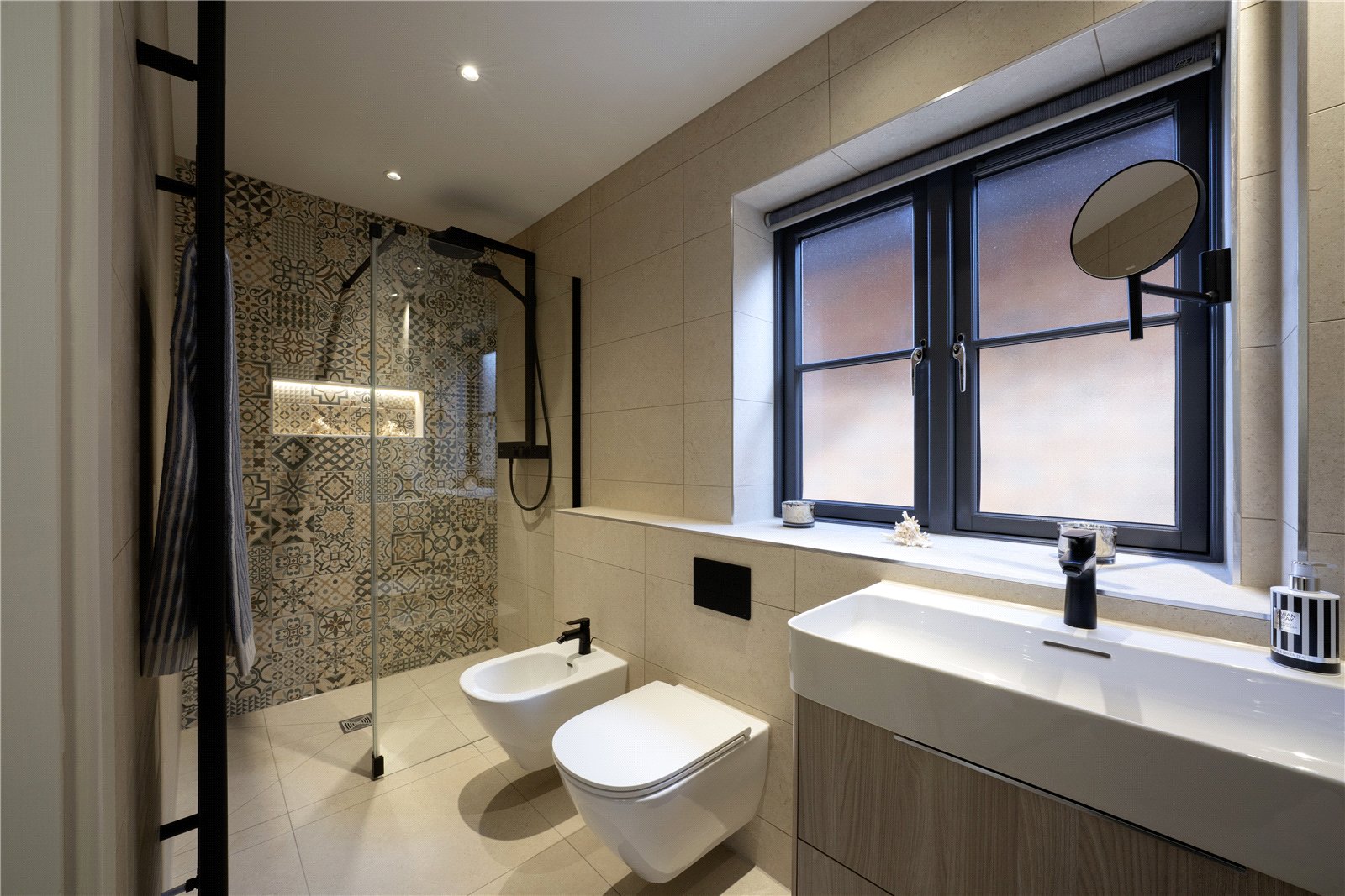 The owner’s ground-floor bedroom suite has bespoke fitted wardrobes and a luxurious en-suite with wet-room style shower, subtle architectural lighting and the ever-desirable bidet. The designers have incorporated a crittal-style wall panel and door into this bedroom to indulge the occupants by connecting this room with the study and reading area and giving views through into the garden - a serene retreat after a coastal walk.
