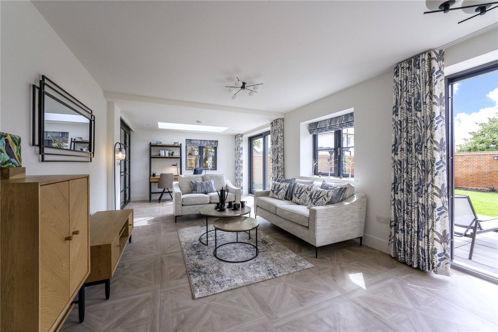 - Open-plan sitting/dining/ reading room with triple aspect windows and two sets of sliding doors opening to the garden.