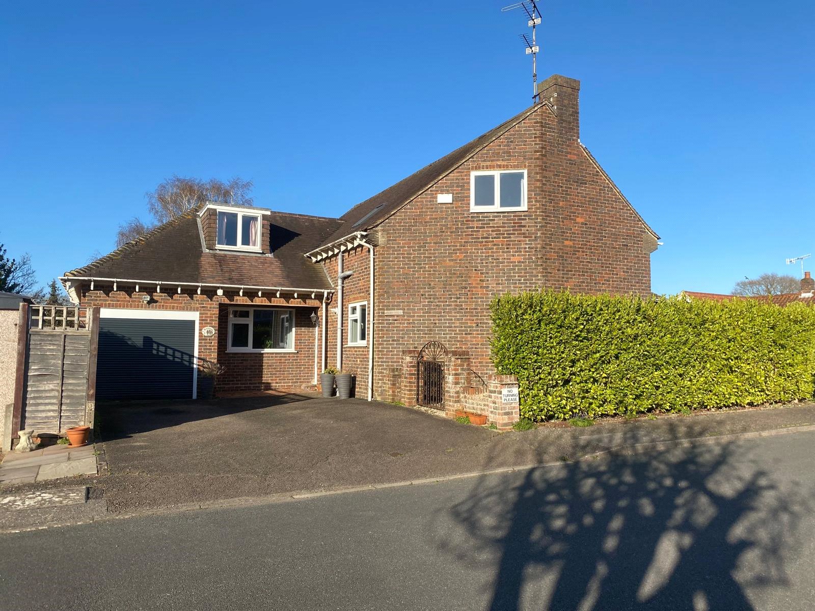 Outside the property has a manageable southerly garden which is attractively hard landscaped and is enveloped by a Griselinia hedge which provides both a pleasant outlook and privacy. A double drive leads to an attached garage.